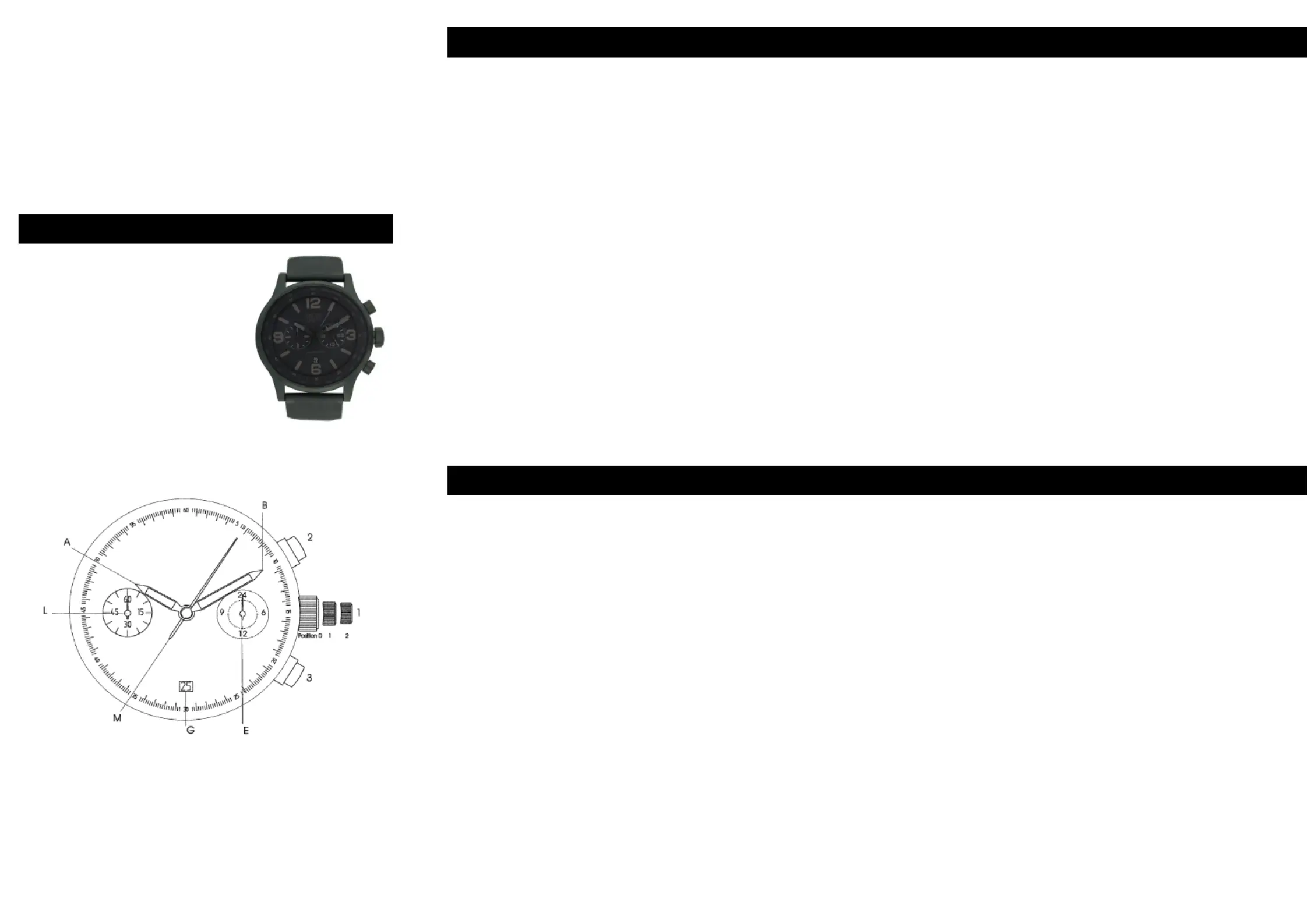 Sekundenzeiger (M) auf den Null Position steht. Zum Schluß drucken Sie die Krone (1)