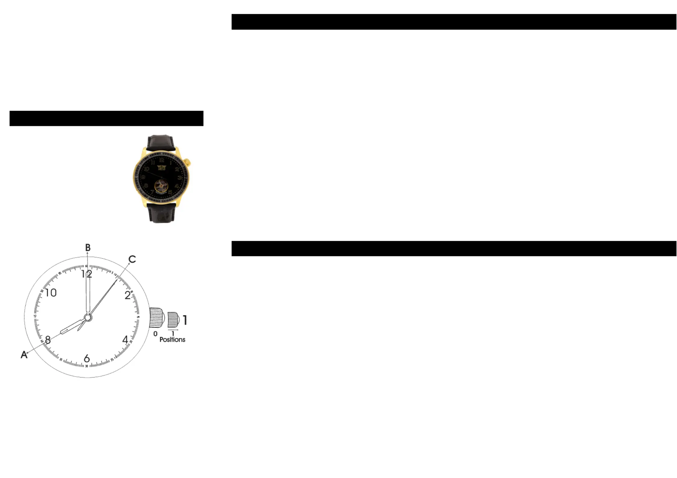 minute (B) hands shows the correct time. Push the crown (1) back to position 0.
