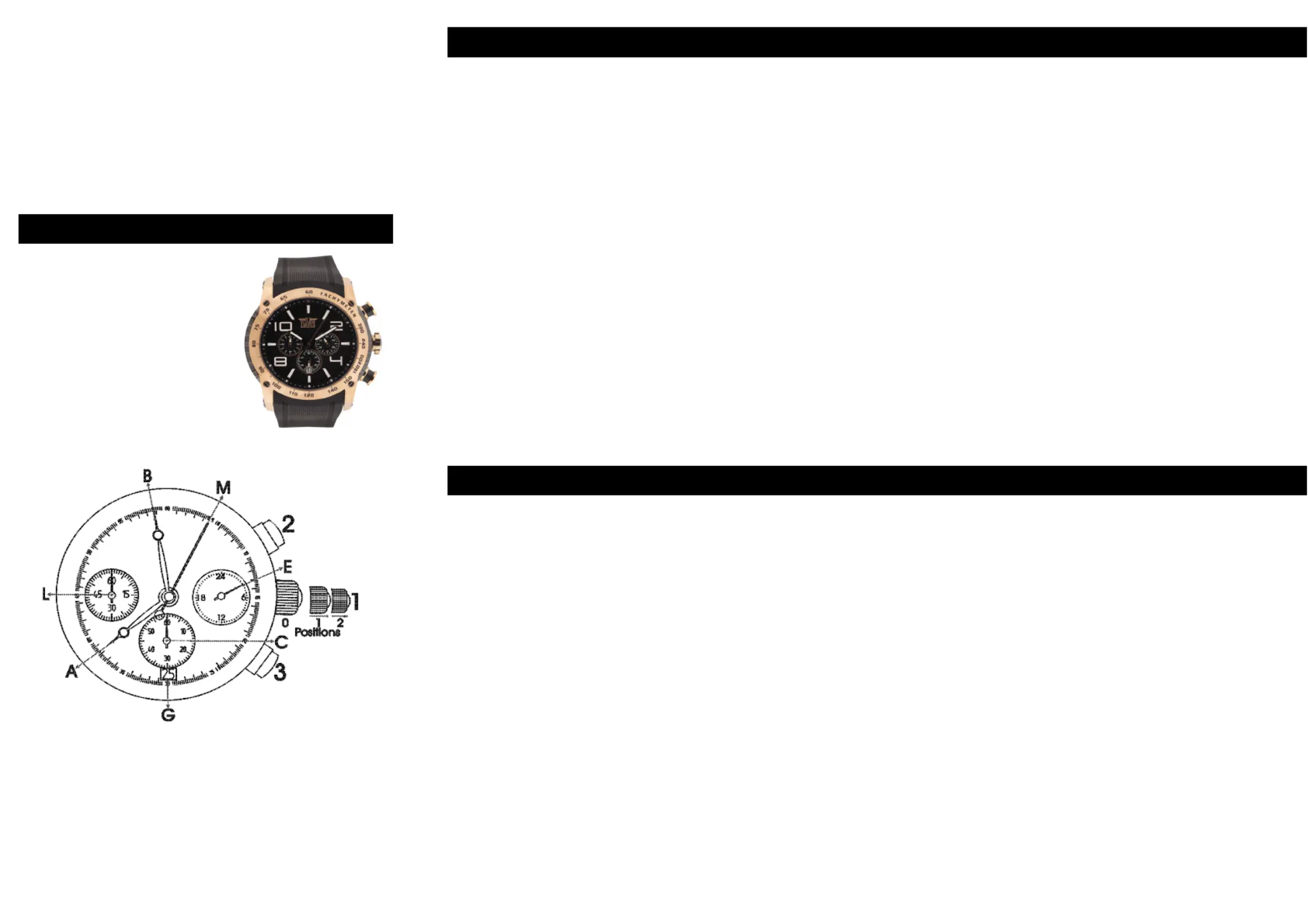 will stop. The hands (M) and (L) will show the right time. By pressing button 3 the