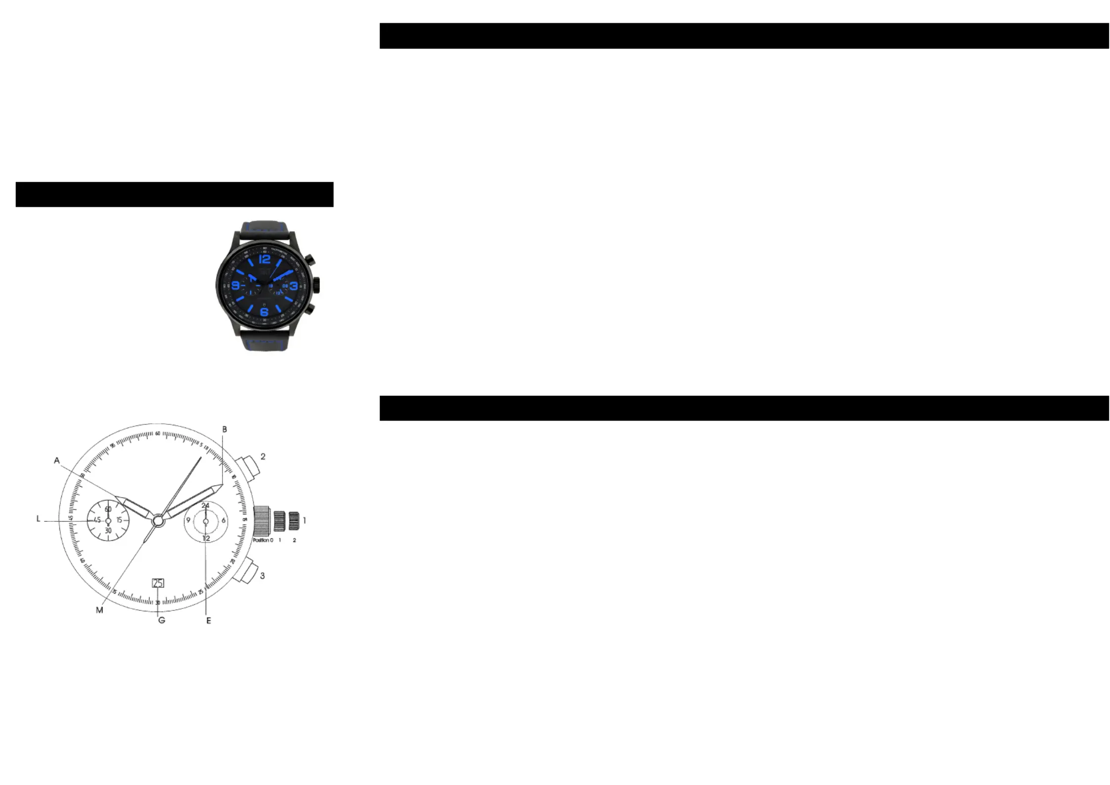 Sekundenzeiger (M) auf den Null Position steht. Zum Schluß drucken Sie die Krone (1)