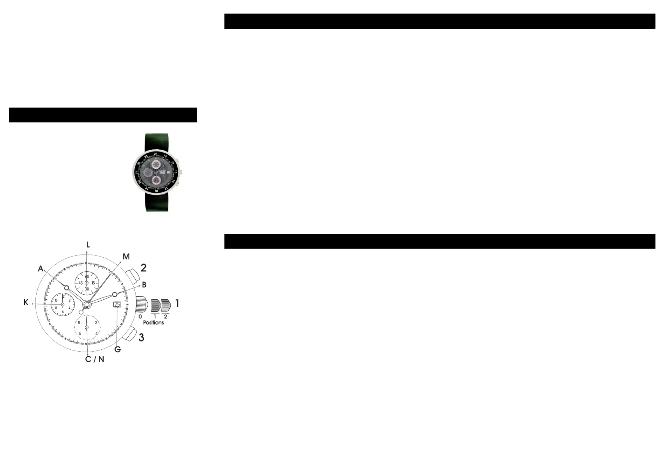 Um der Chronograph zu starten betätigen Sie Taste (2). Zeiger (M) und (N) laufen jetzt rund.