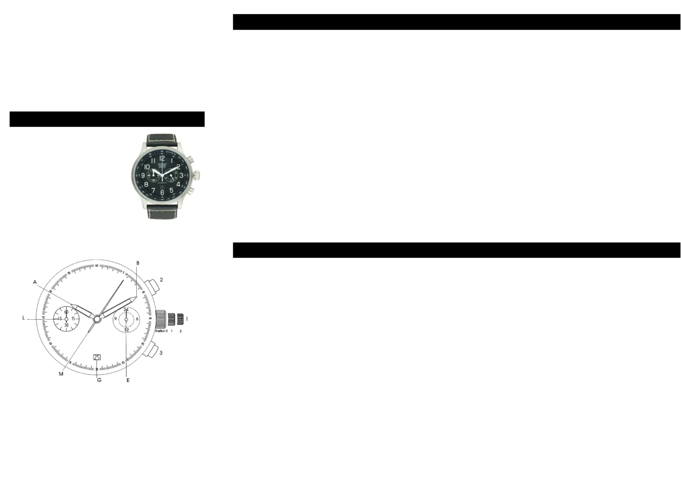 Sekundenzeiger (M) auf den Null Position steht. Zum Schluß drucken Sie die Krone (1)
