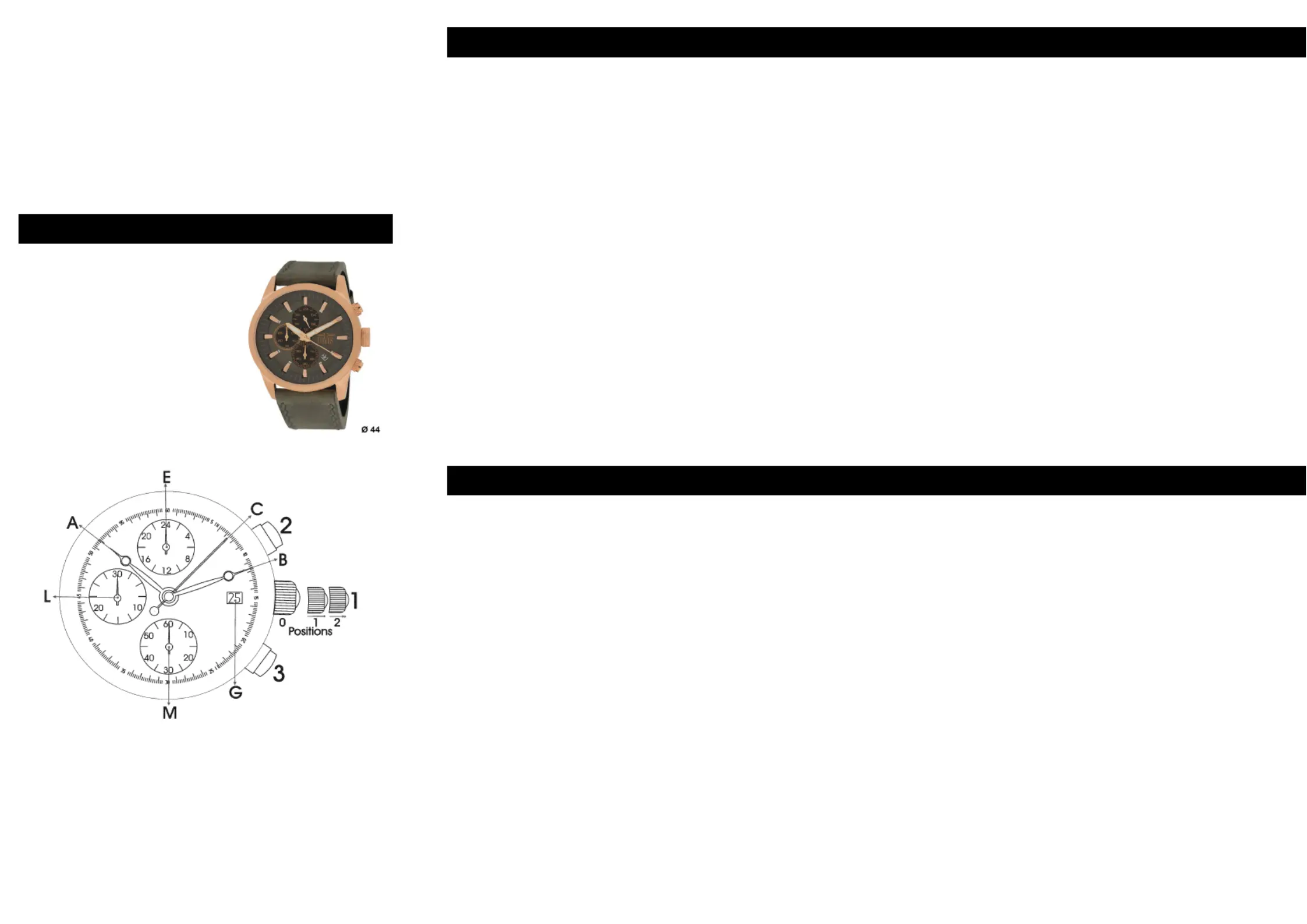 Once the both hands been zeroed, reset the time and push the crown (1) back to position (0).