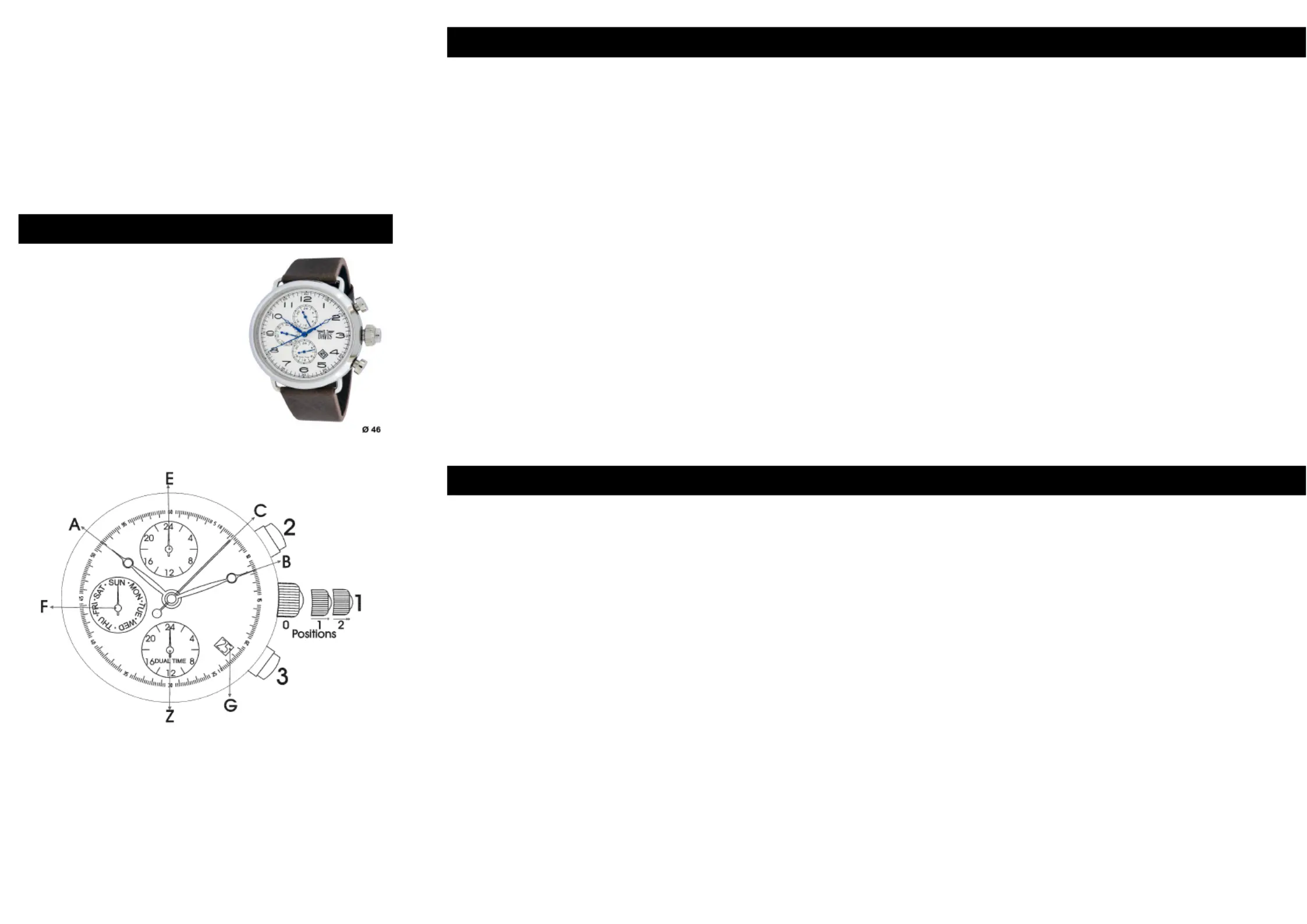 Pull out the crown (1) in position (2). Turn the crown (1) clockwise to change the day. When the correct day