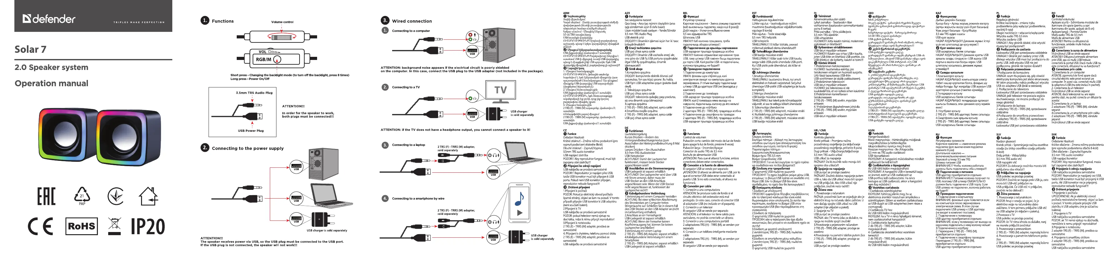 Läs gratis den bruksanvisning för Defender Solar 7 (4 sidor) i kategorin högtalare. Guiden har ansetts hjälpsam av 3 personer och har ett genomsnittsbetyg på 4.1 stjärnor baserat på 5 recensioner. Har du en fråga om Defender Solar 7 eller vill du ställa frågor till andra användare av produkten? Ställ en fråga