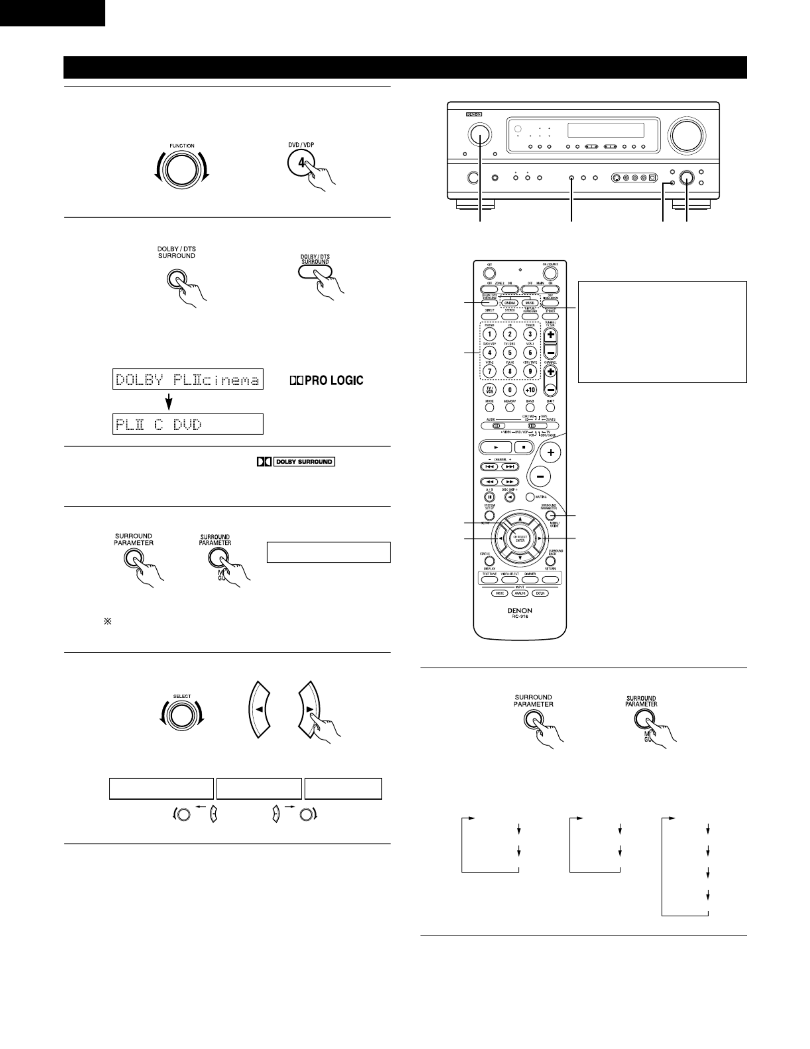 SURROUND, tourner alors le bouton SELECT sur Dolby Pro