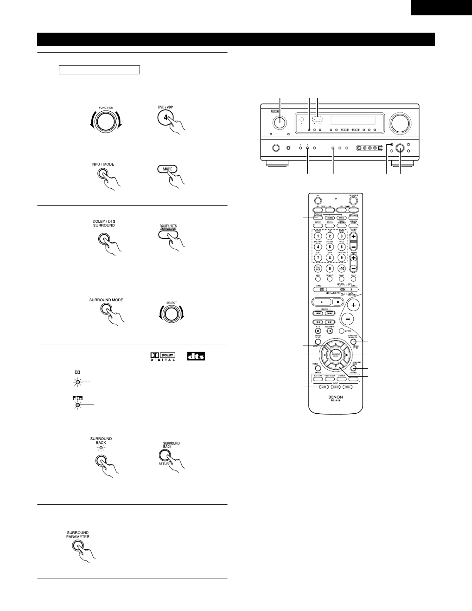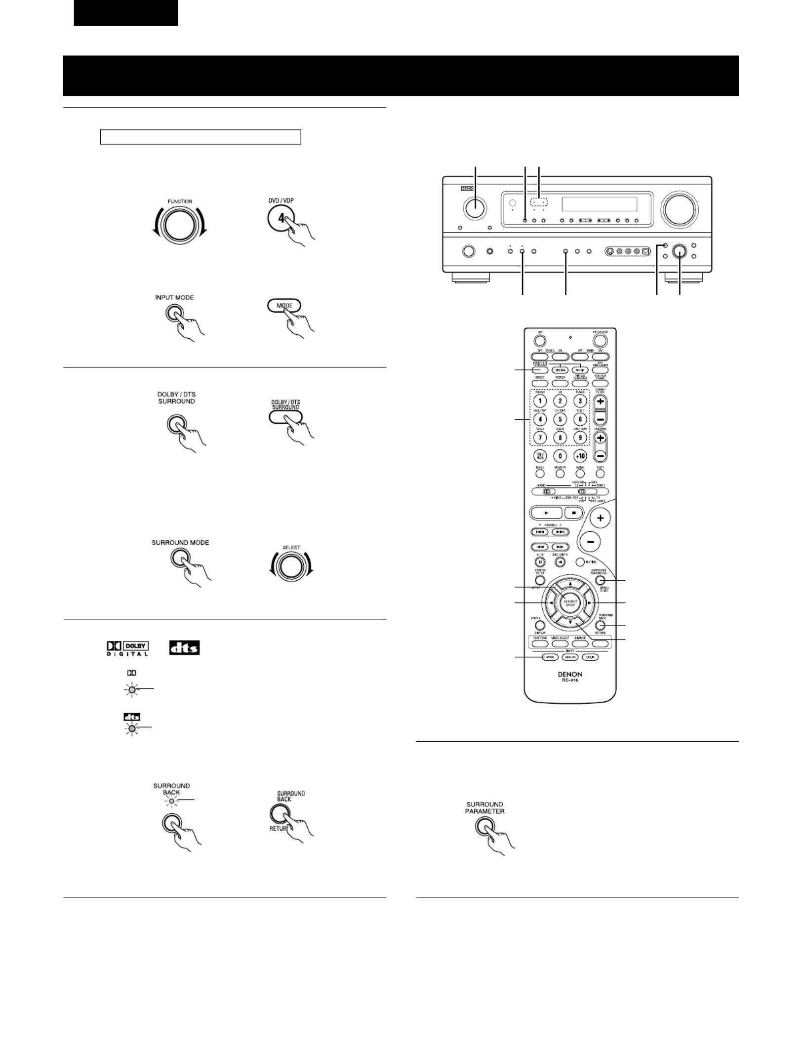 Mode Dolby Digital (uniquement avec entr e num rique) et le mode d ambiance DTS é é ’