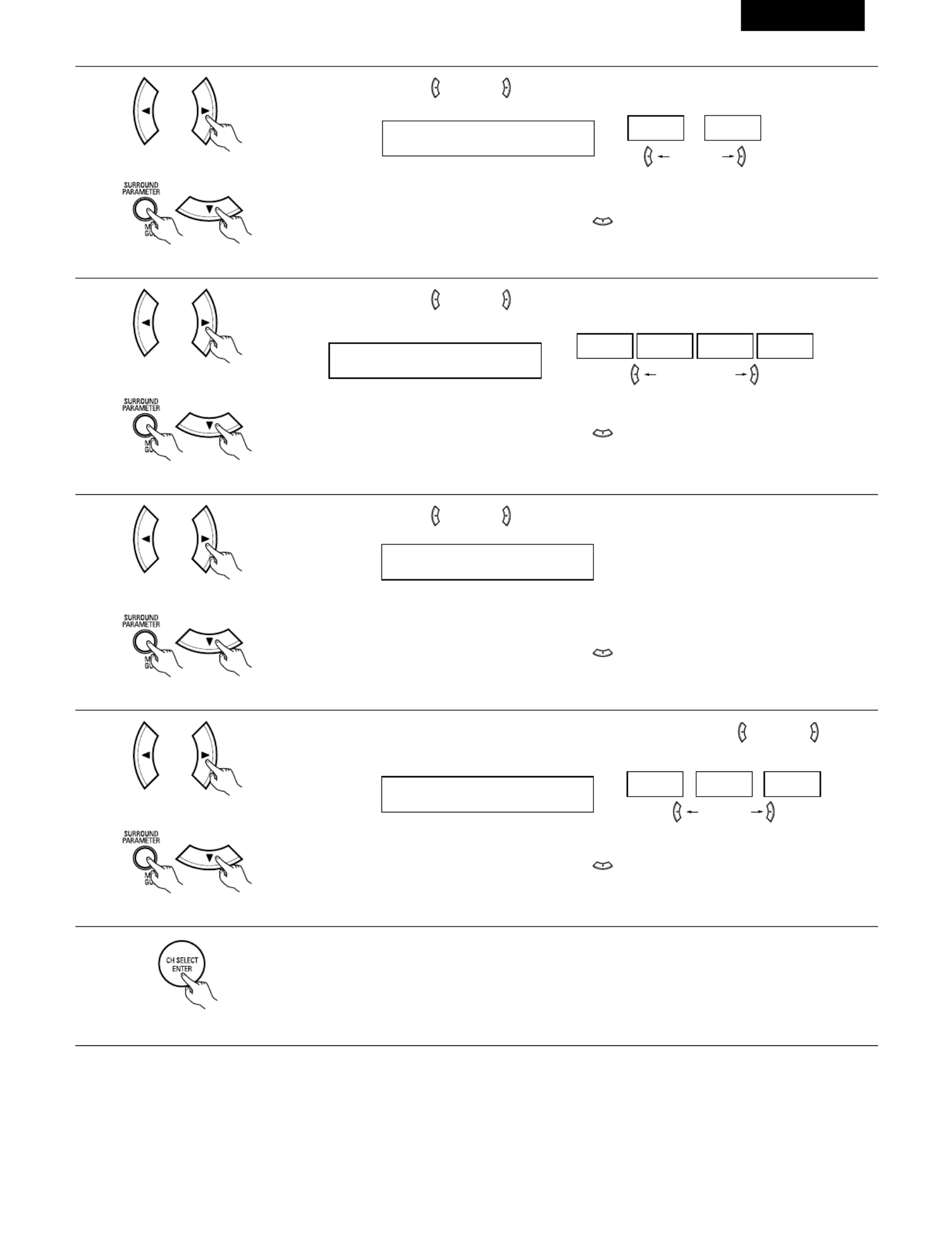 Appuyer sur la touche SURROUND PARAMETER ou (bas)  pour passer au r glage par dé éfaut.