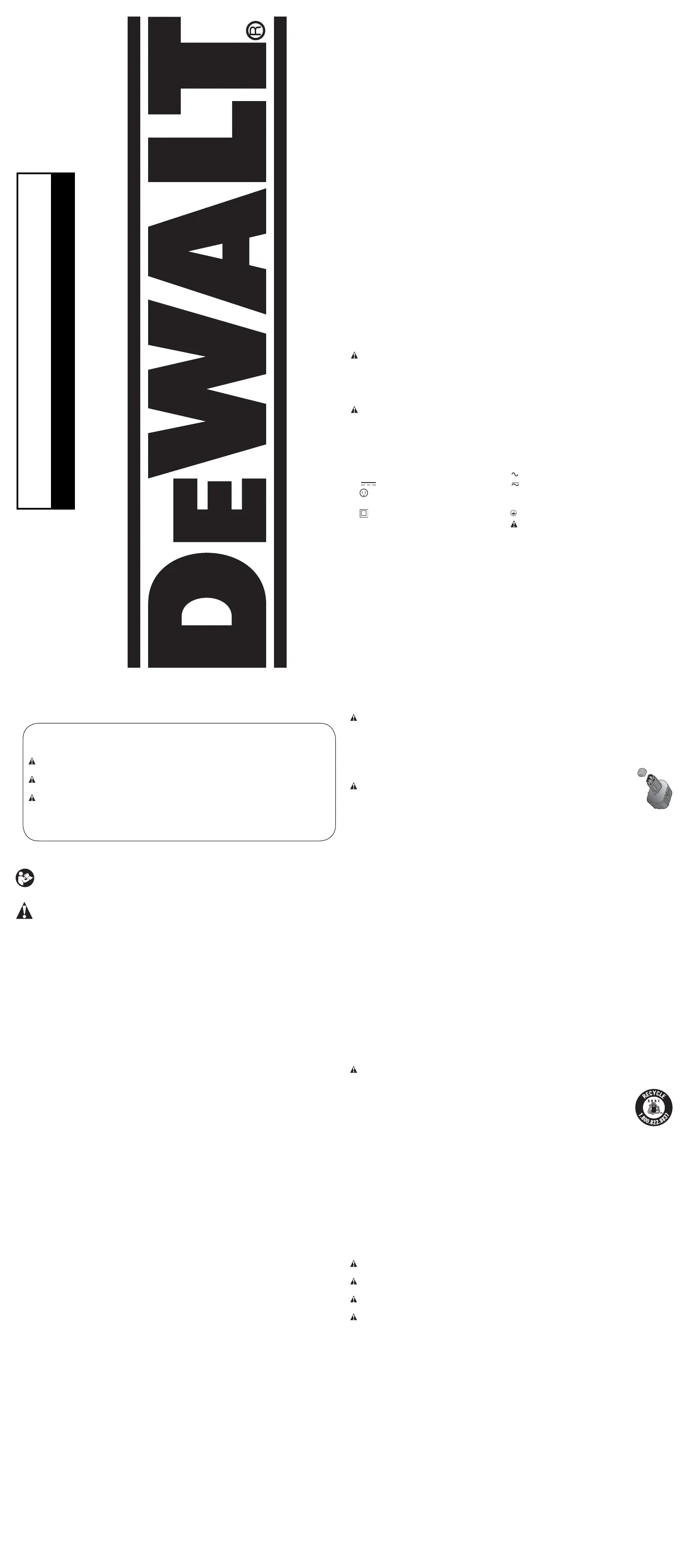 (SEP08) Part No. 660222-00 DC545, DC546, DC547 Copyright © 2006, 2008 DEWALT
