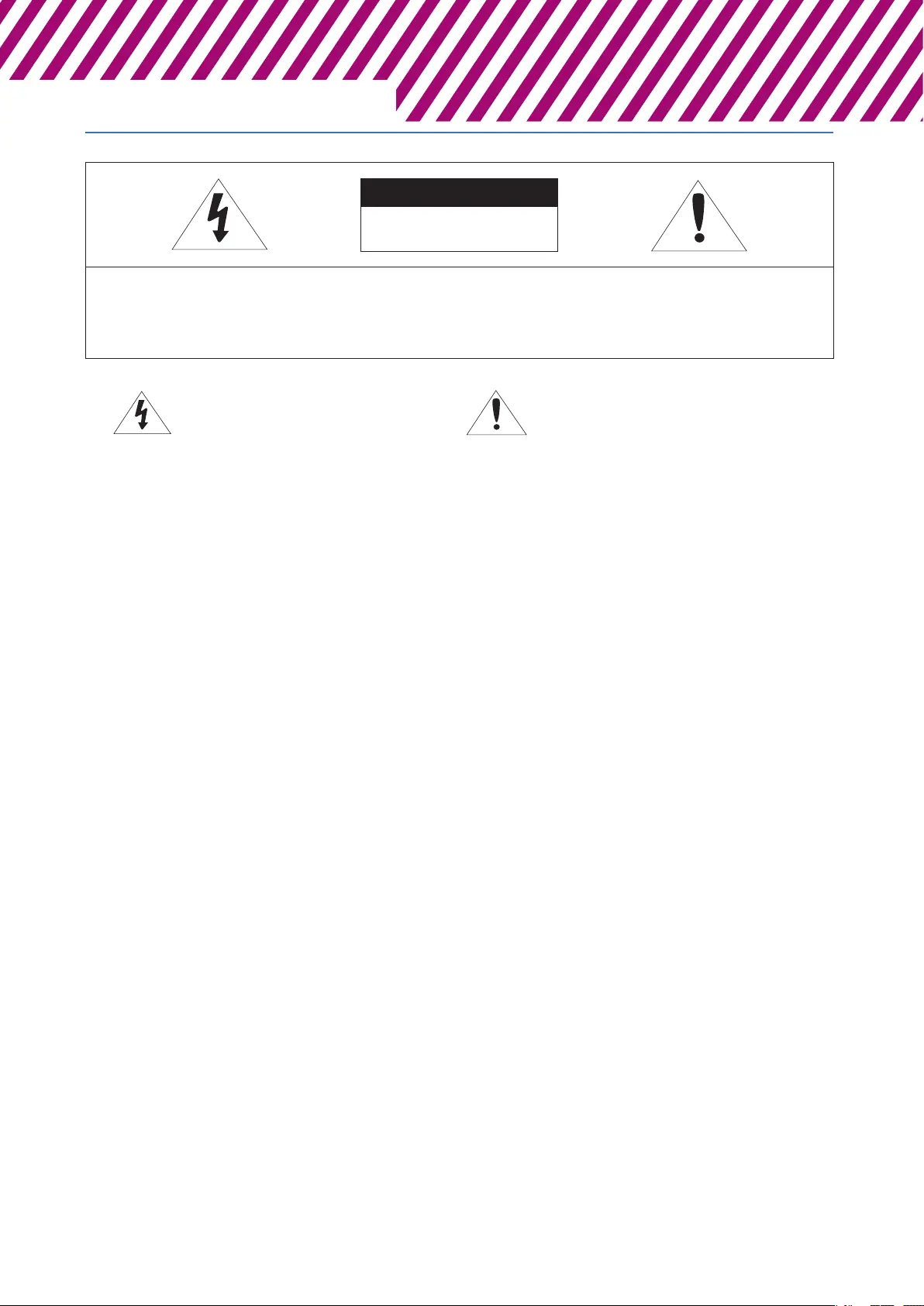 TO REDUCE THE RISK OF ELECTRIC SHOCK, DO NOT REMOVE COVER (OR BACK) NO USER SERVICEABLE