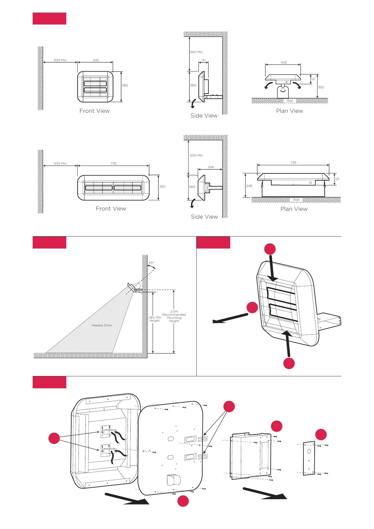 Heaters are supplied with an integral wall bracket which may be fi xed