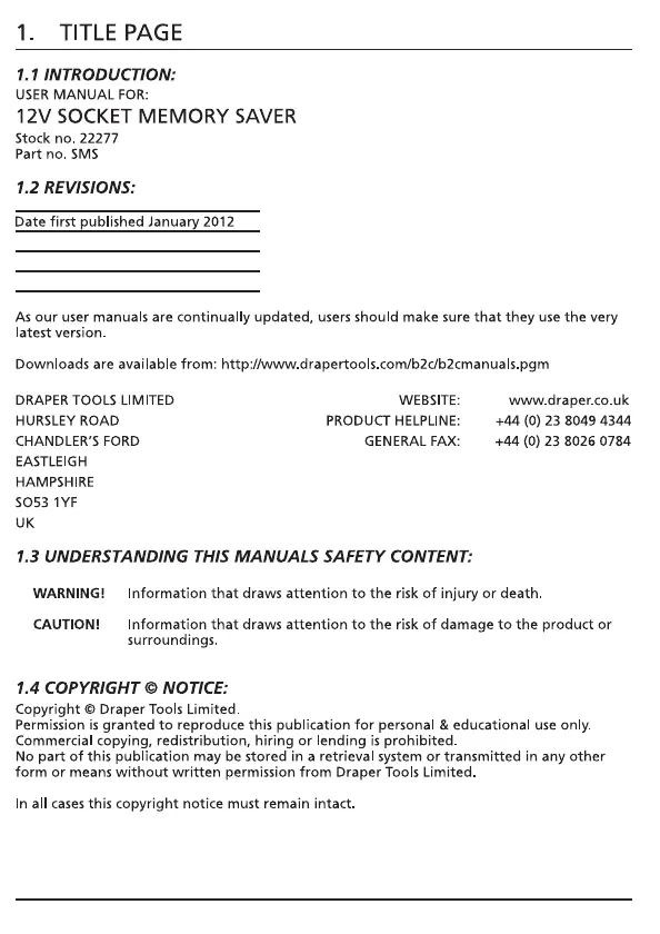 Draper 22277 Bruksanvisning