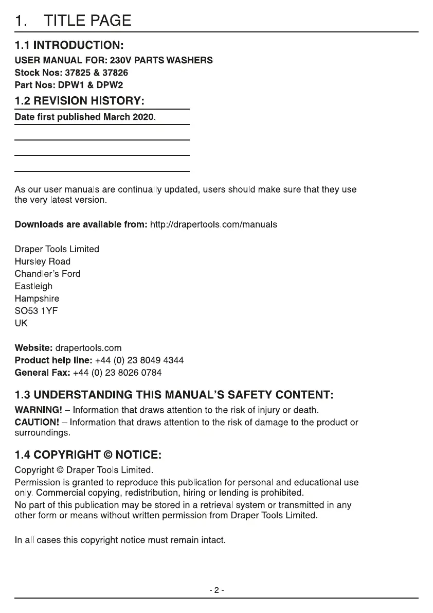 Draper 37826 Bruksanvisning
