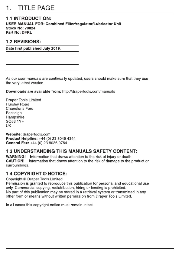 Draper 70824 Bruksanvisning