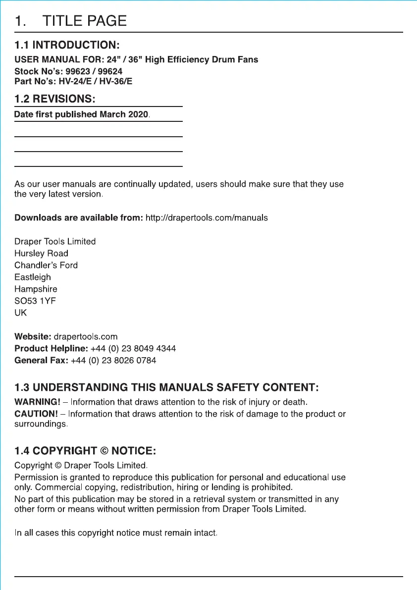 hushålls fläkt Draper Manualer