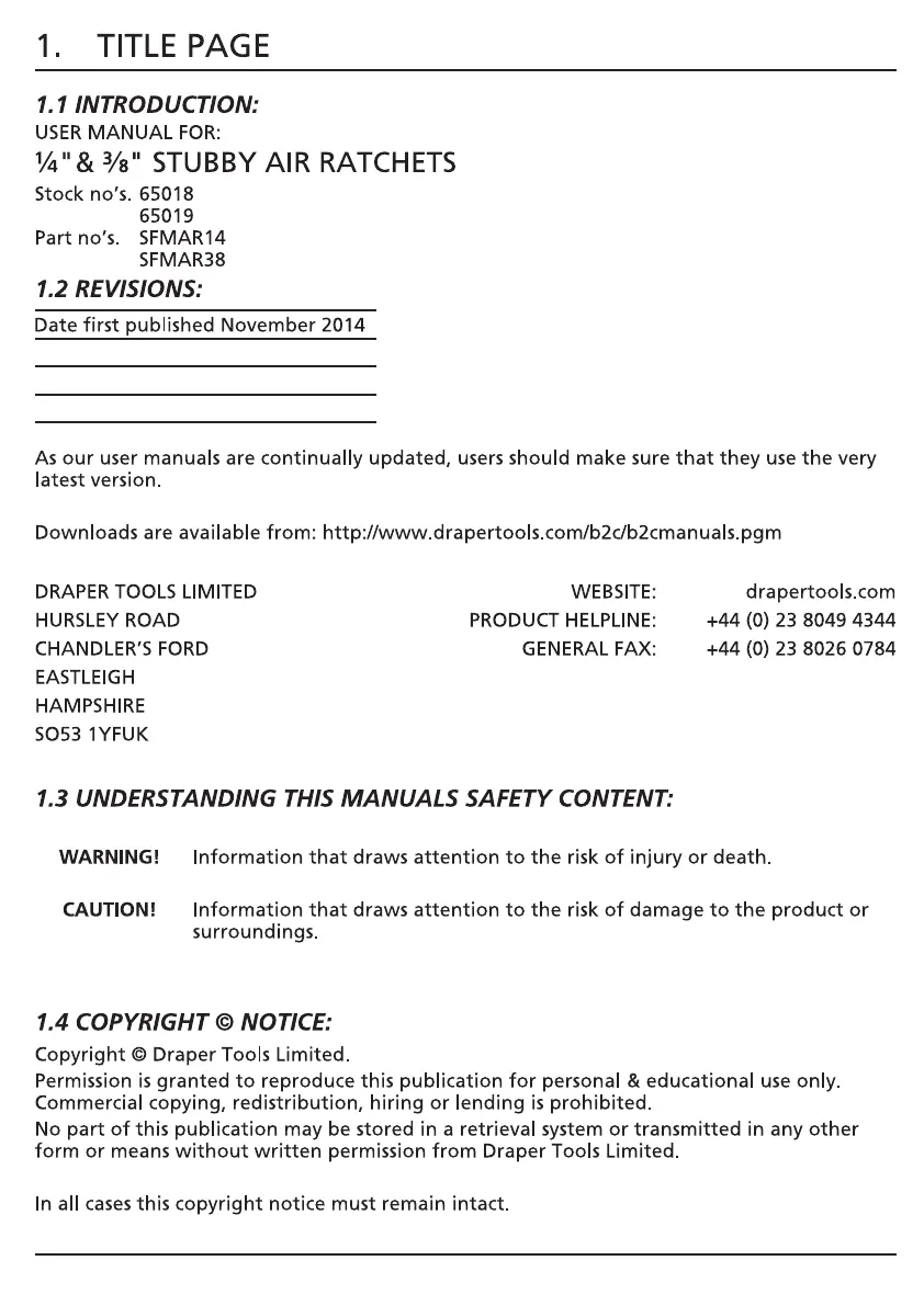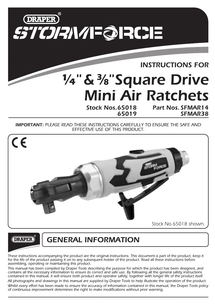 Draper Storm Force 65019 Bruksanvisning
