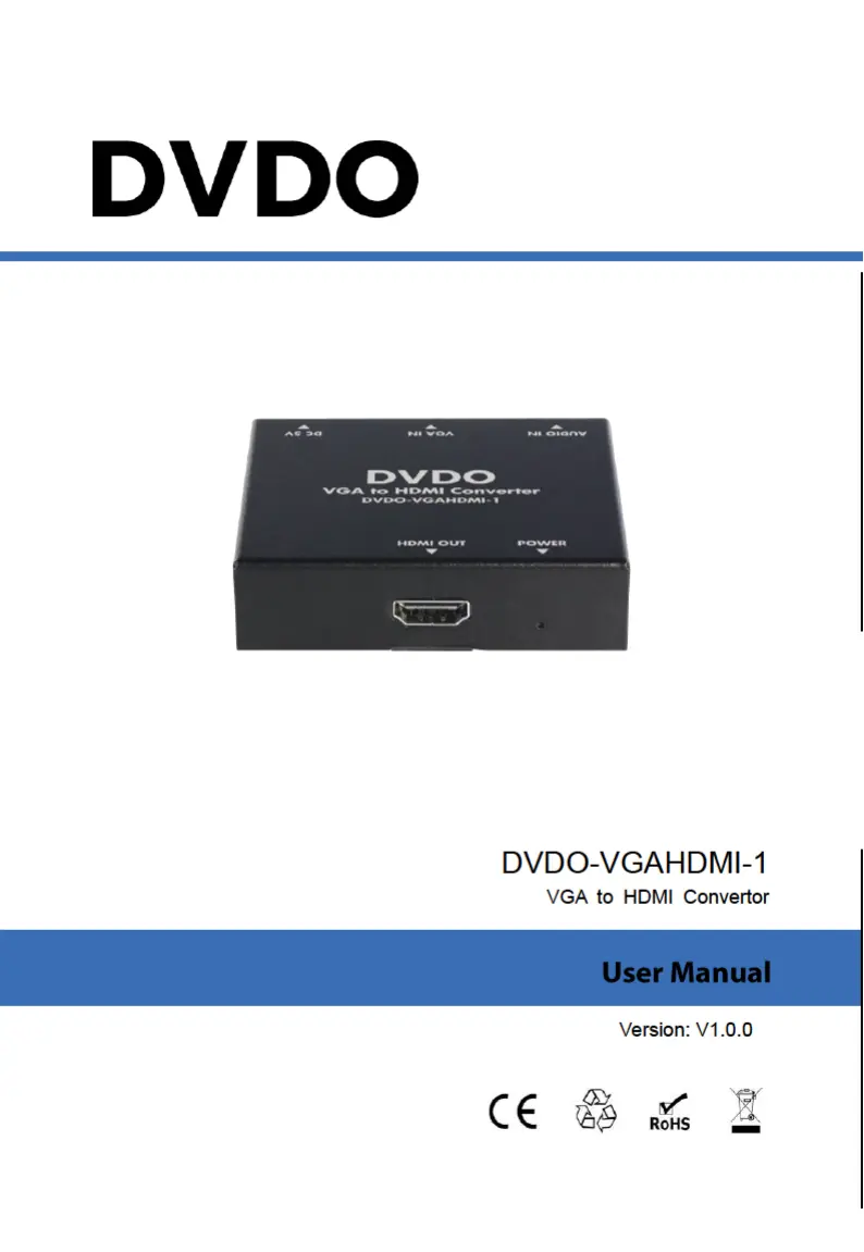 Läs gratis den bruksanvisning för DVDO -VGAHDMI-1 (9 sidor) i kategorin ej kategoriserat. Guiden har ansetts hjälpsam av 2 personer och har ett genomsnittsbetyg på 4.7 stjärnor baserat på 1.5 recensioner. Har du en fråga om DVDO -VGAHDMI-1 eller vill du ställa frågor till andra användare av produkten? Ställ en fråga