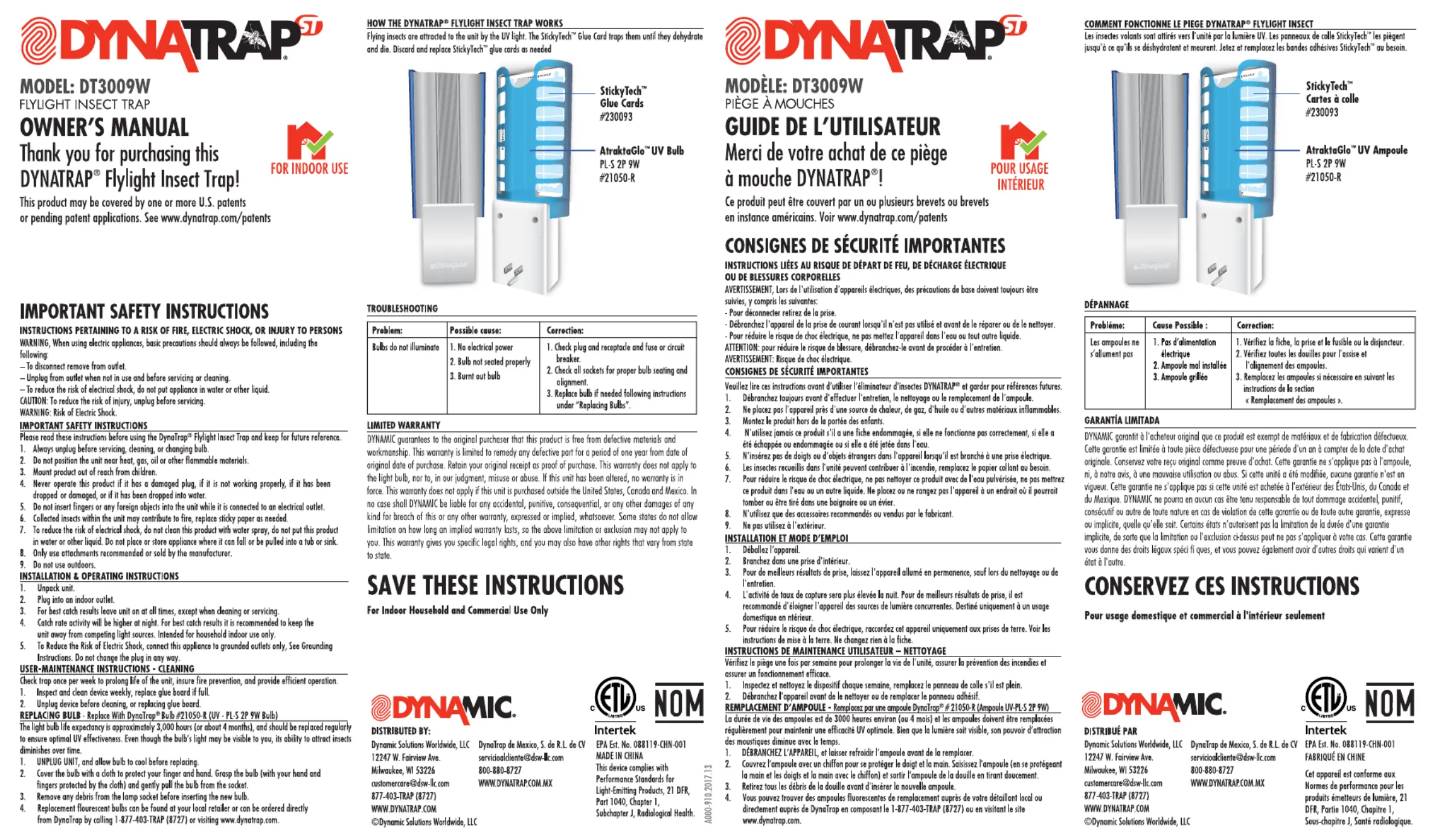 Dynatrap DT3009W Bruksanvisning