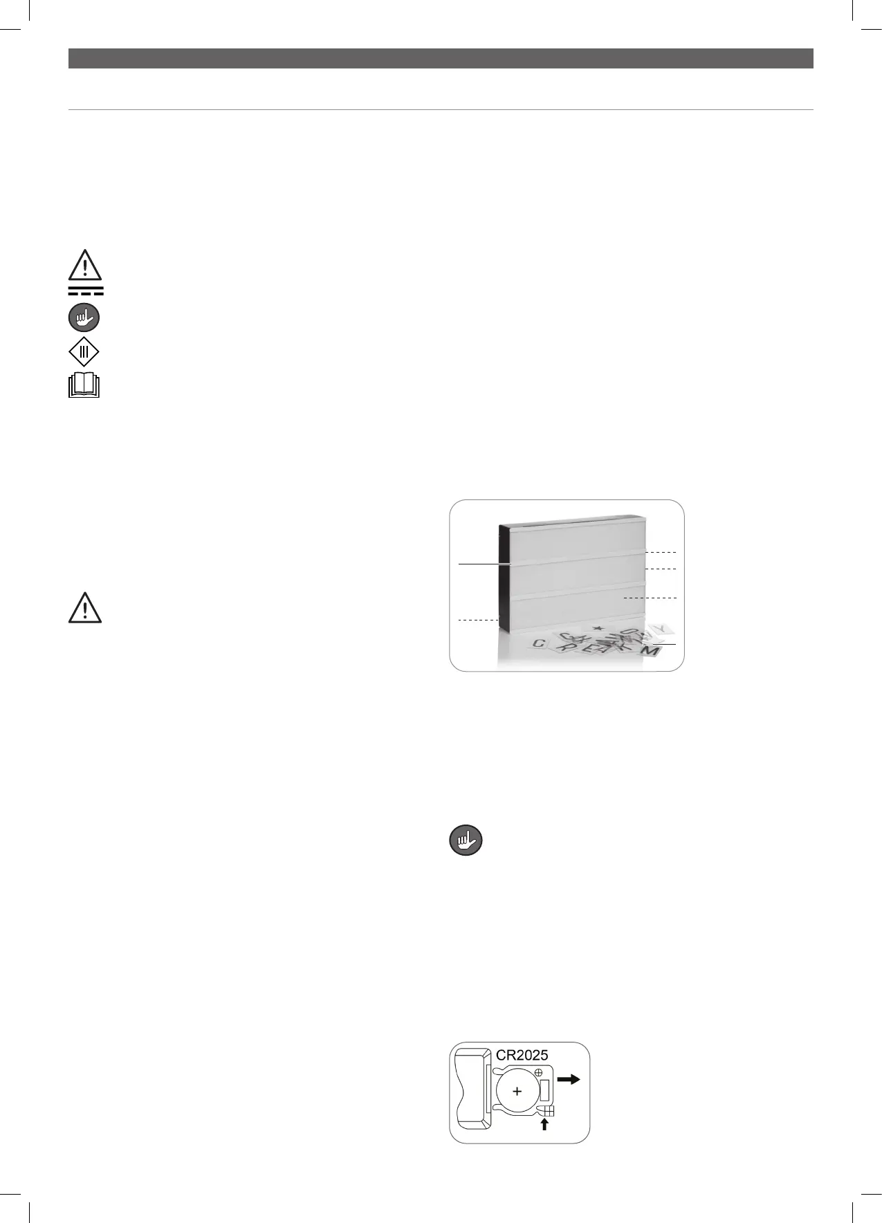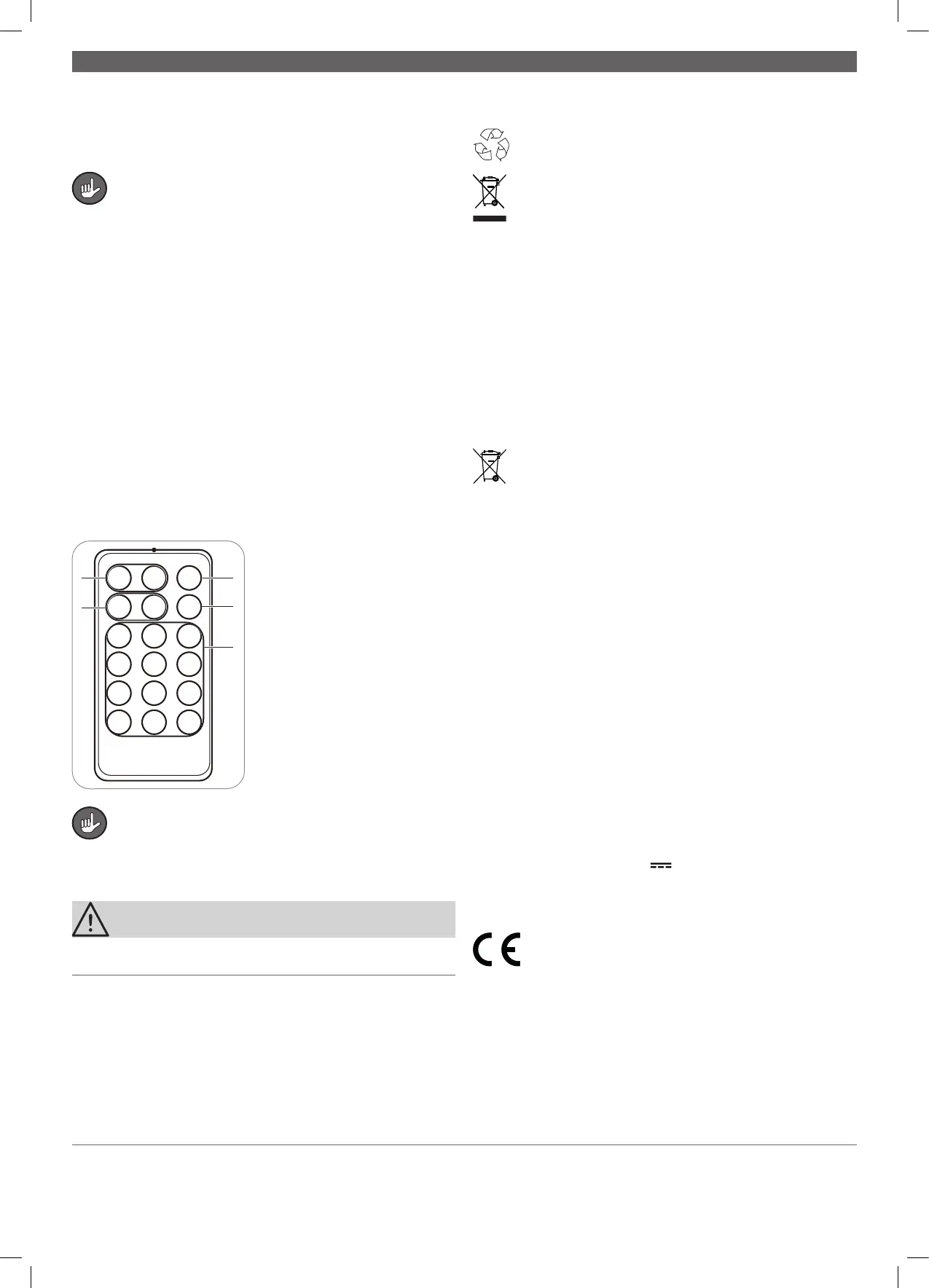 – Fernbedienung: 3 V Knopfzelle, Typ CR2025