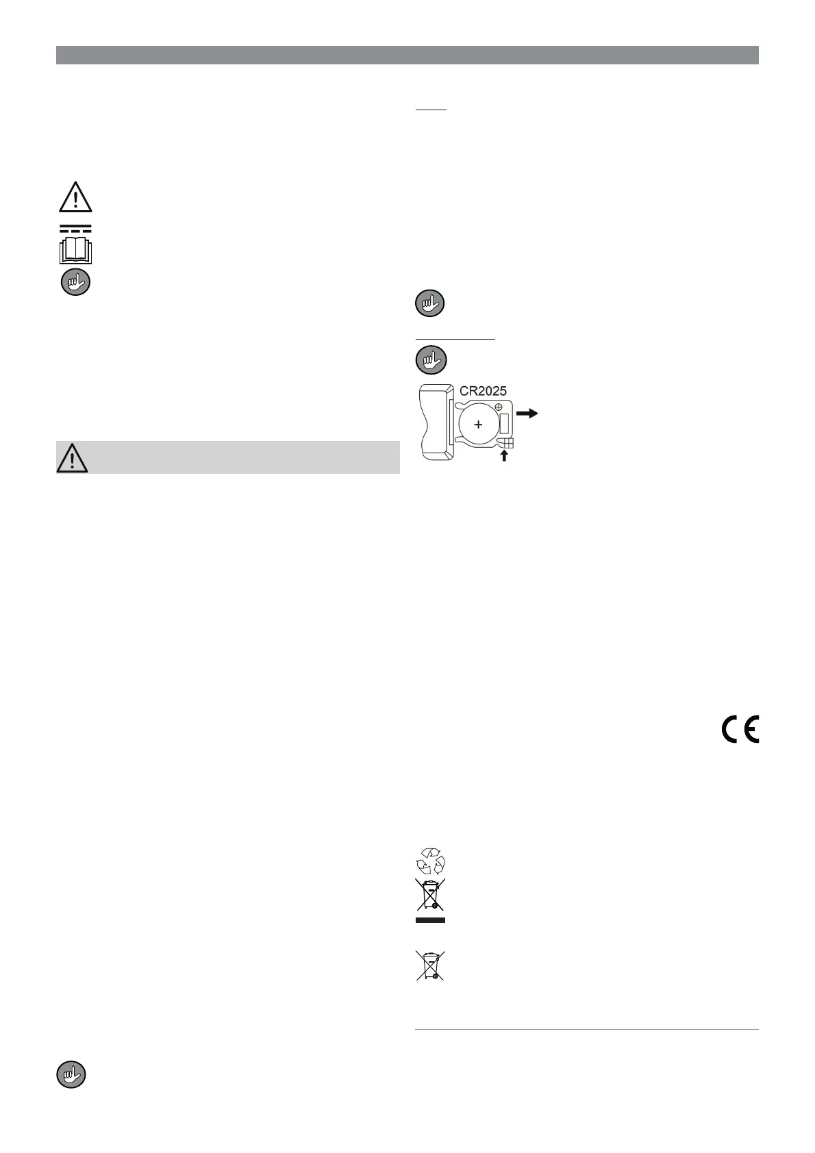 – RC: 3 V (button cell CR 2025)