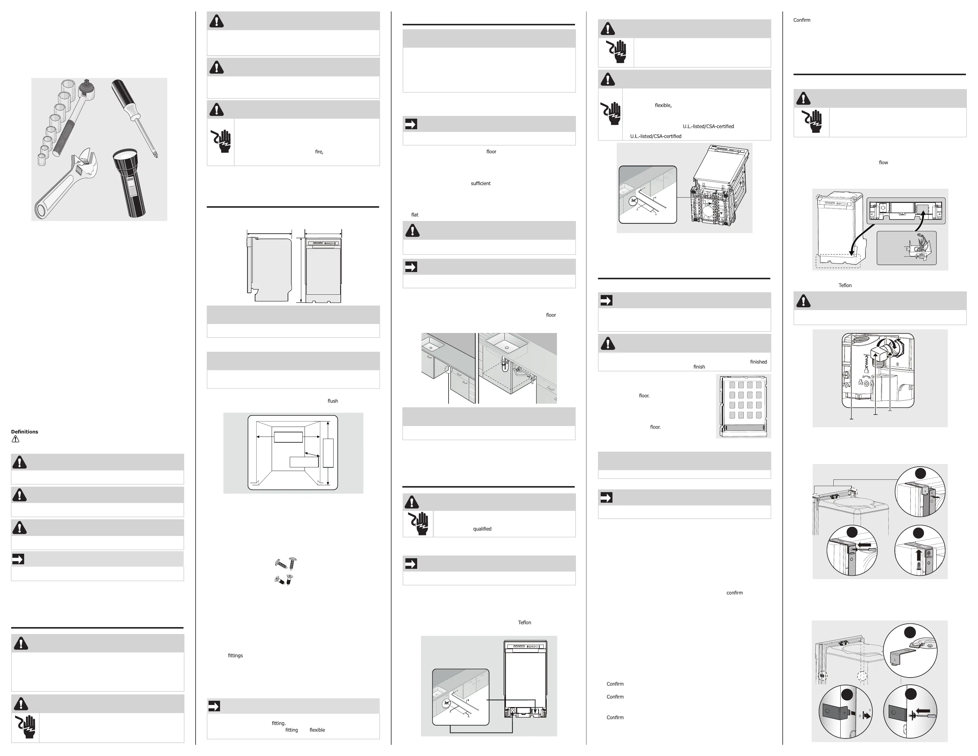 Skill Level: Installation of this dishwasher requires basic mechanical and elec-