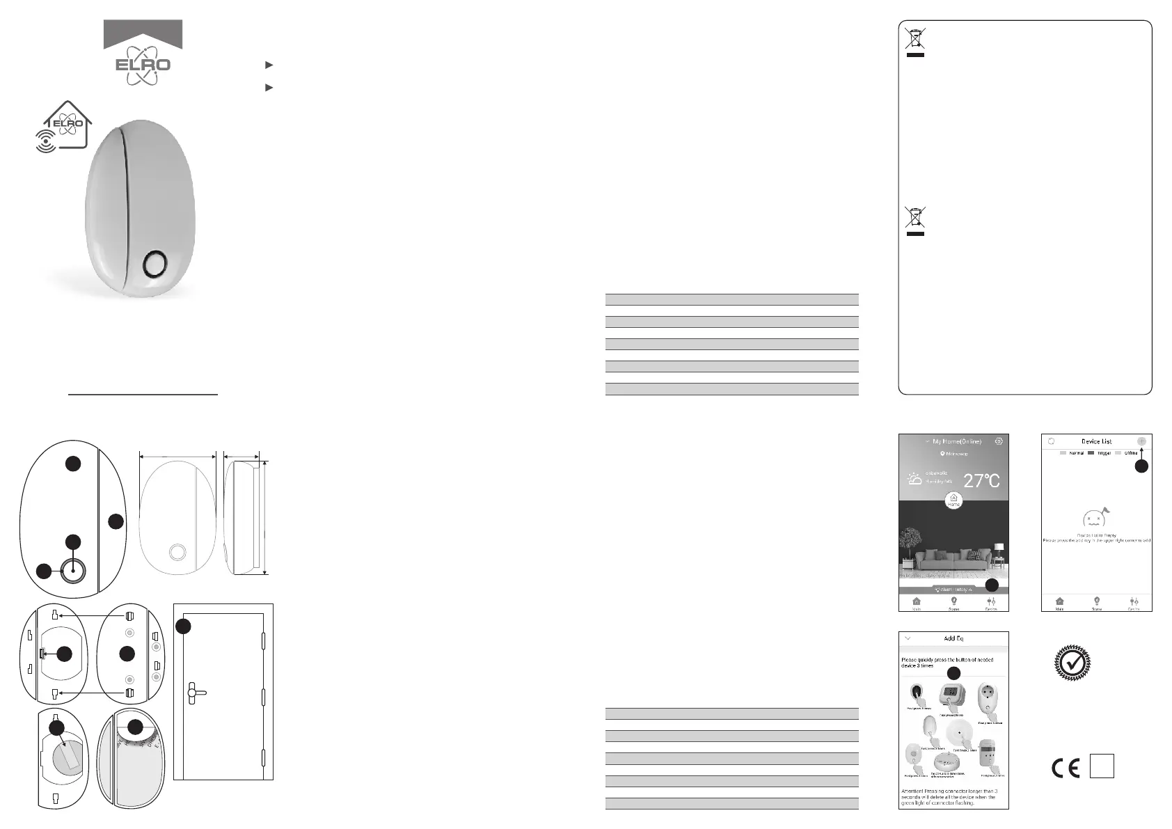 smartphone by the ELRO Connects App. Door/window contacts can be