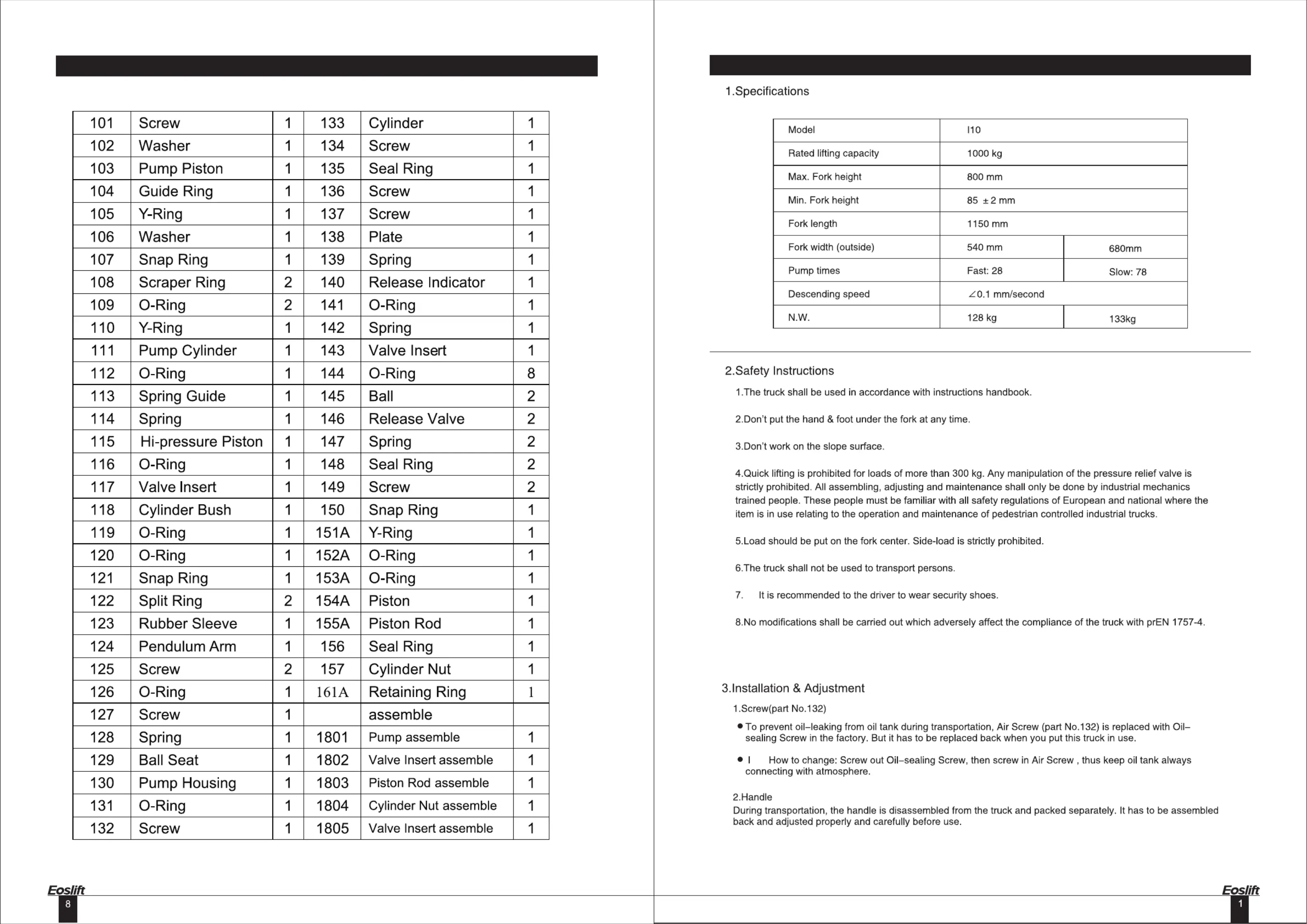Eoslift I10 Bruksanvisning
