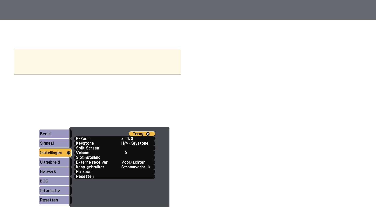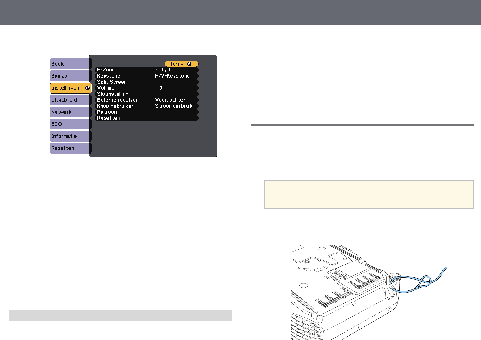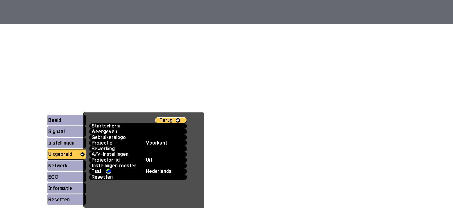 Projectorfuncties aanpassen 58