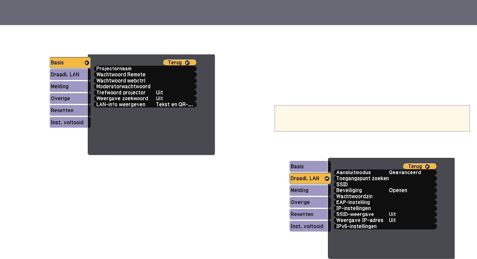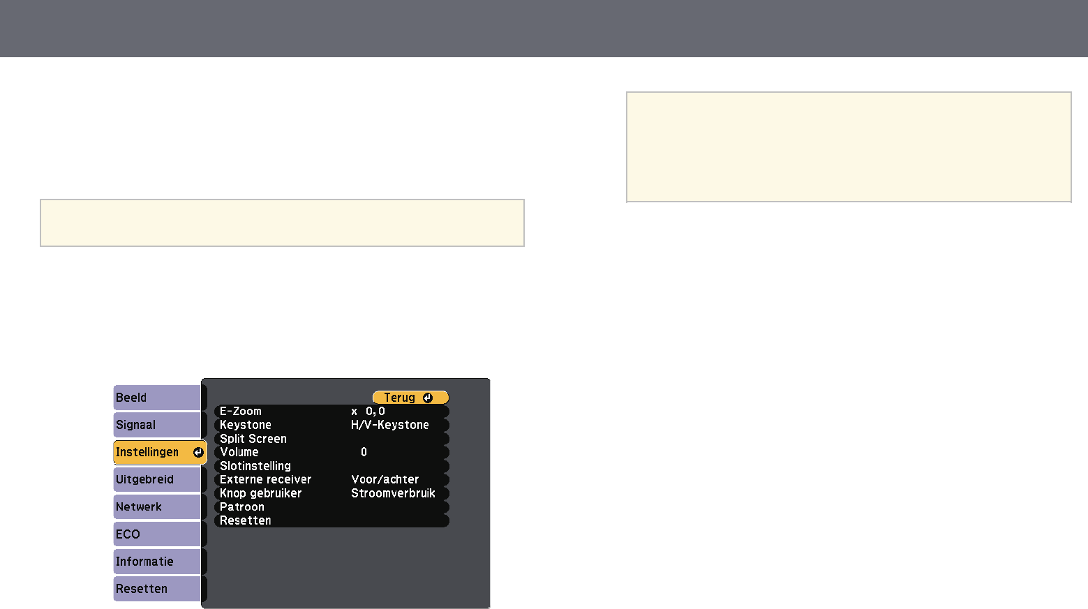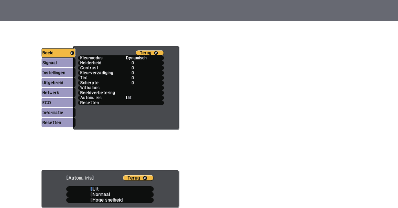 Projectorfuncties aanpassen 58