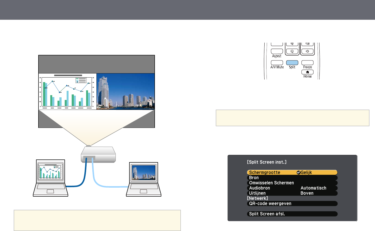 Beperkingen projectie gesplitst scherm............................................................................... 61