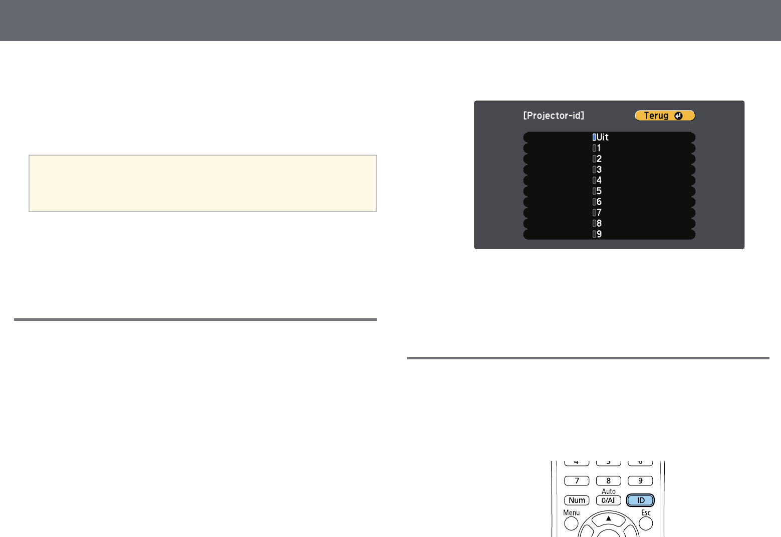 Instellen van de projector-id..................................................................................................... 74