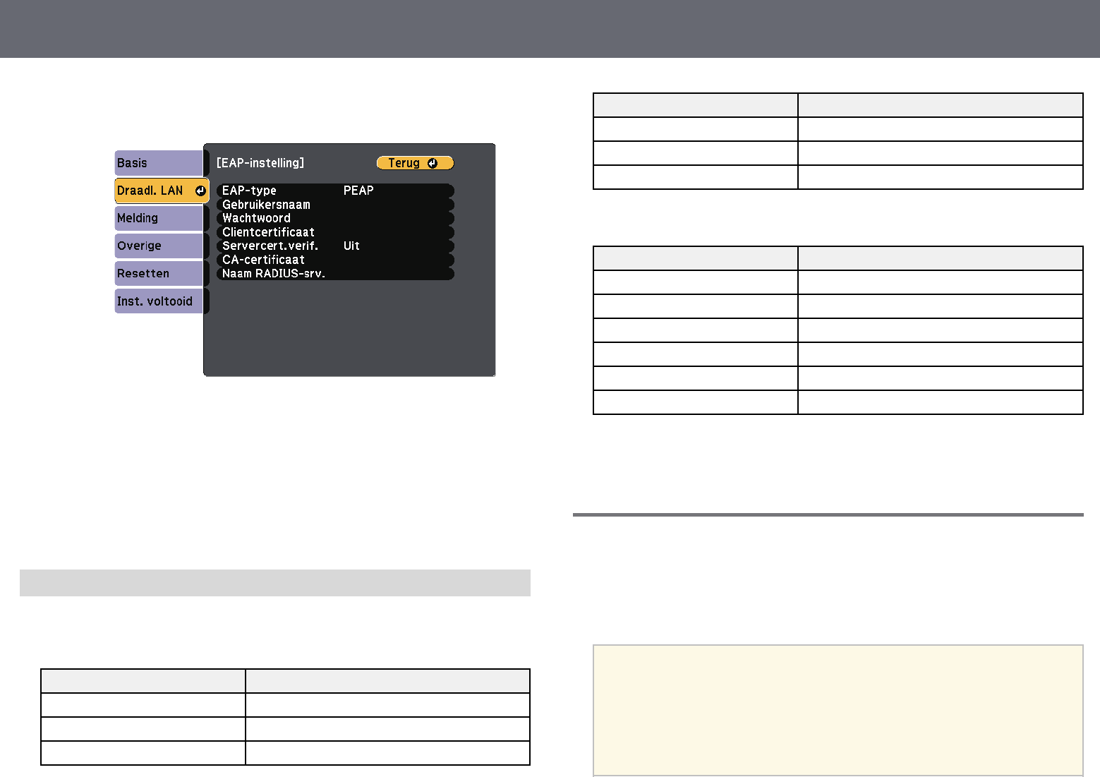 sNetwerk >Netwerkconfiguratie >Draadloos LAN >EAP-