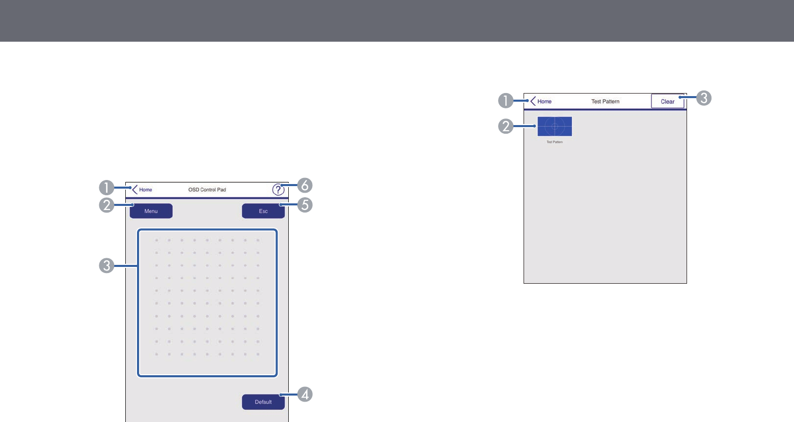 BToont beschikbare testpatronen; selecteer om een testpatroon te projecteren.
