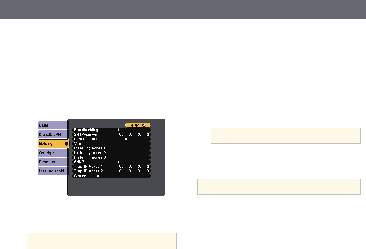 E-mailwaarschuwingen voor het projectornetwerk instellen 106