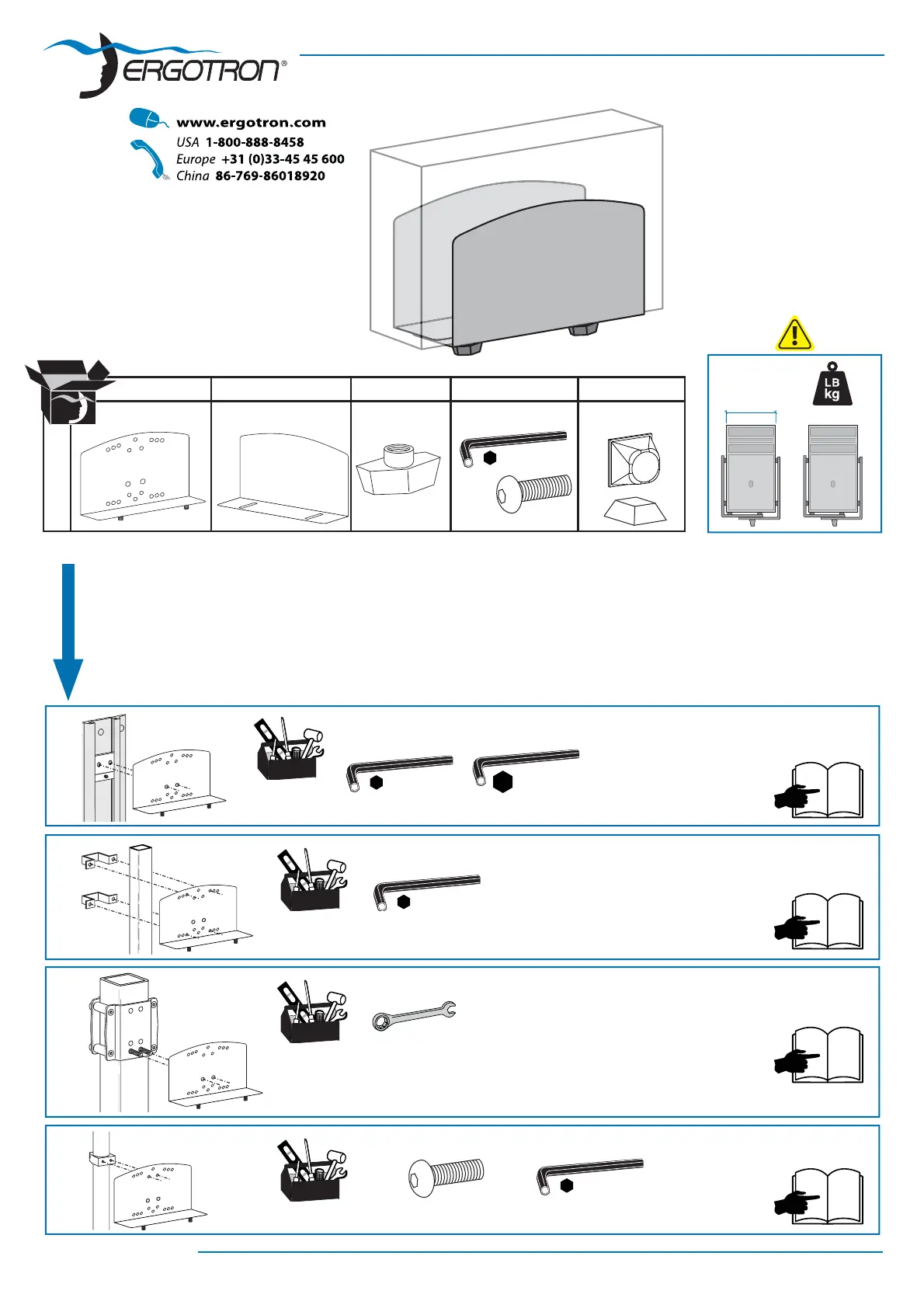 BEFESTIGUNGSOPTIONEN - HINWEIS: Die Ergotron Befestigungsoptionen werden separat verkauft.