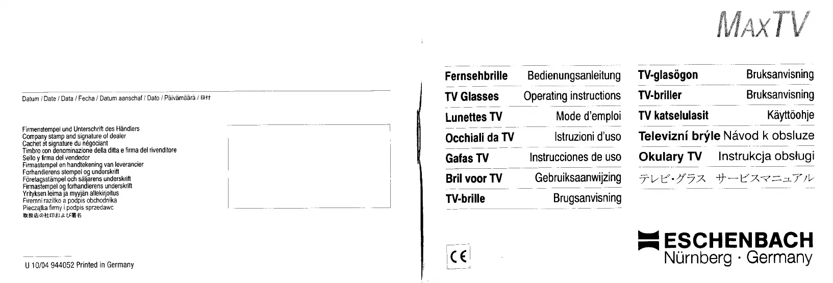 Eschenbach MaxTV Bruksanvisning