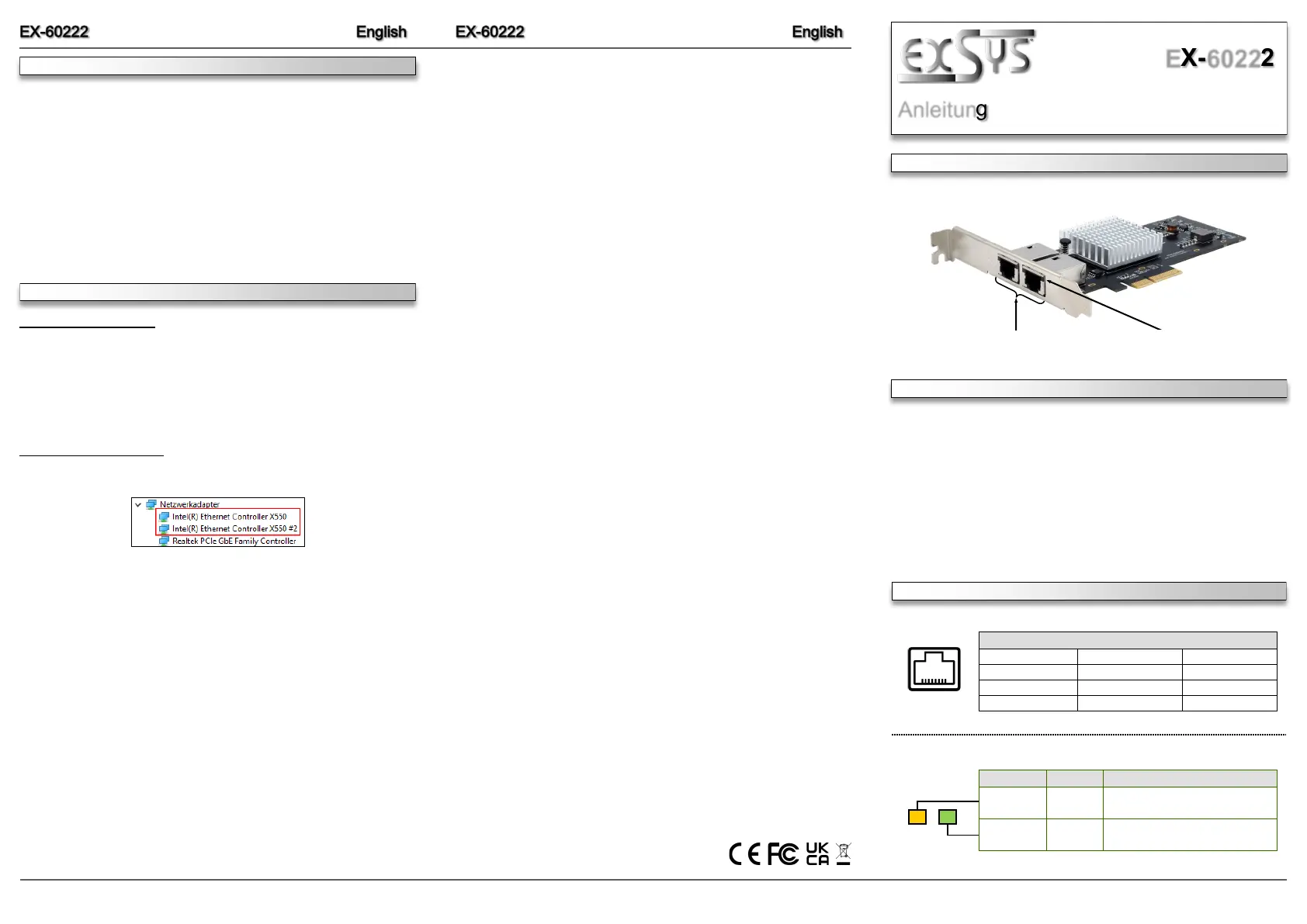 nätverkskort/adapter EXSYS Manualer