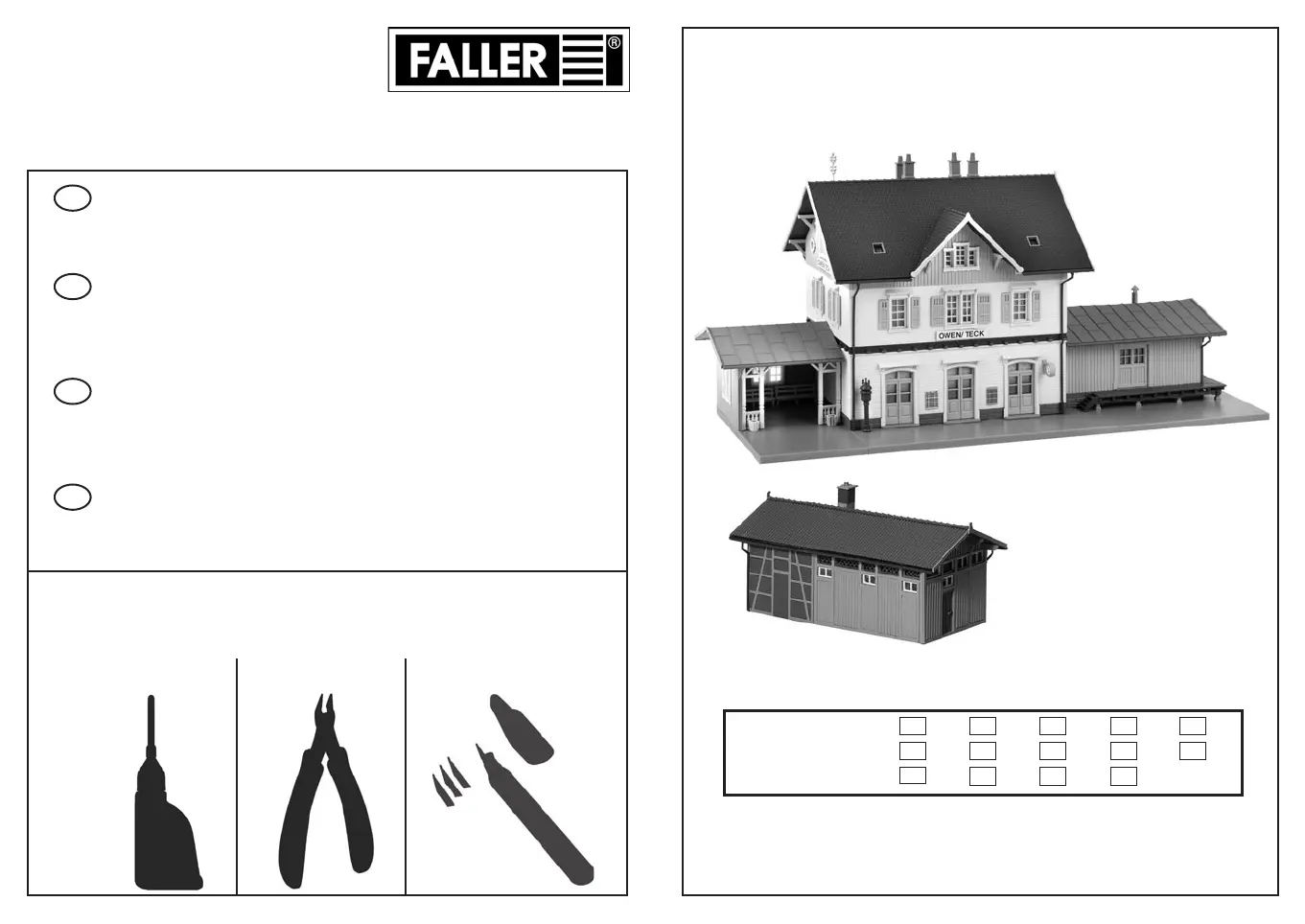Pour l’assemblage du modèle, nous vous recommandons les articles FALLER suivants (non inclus dans le kit):