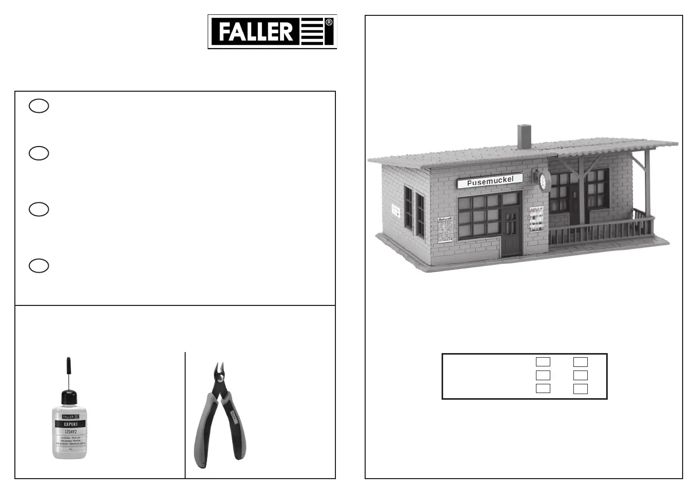 Pour l’assemblage du modèle, nous vous recommandons les articles FALLER suivants (non inclus dans le kit):
