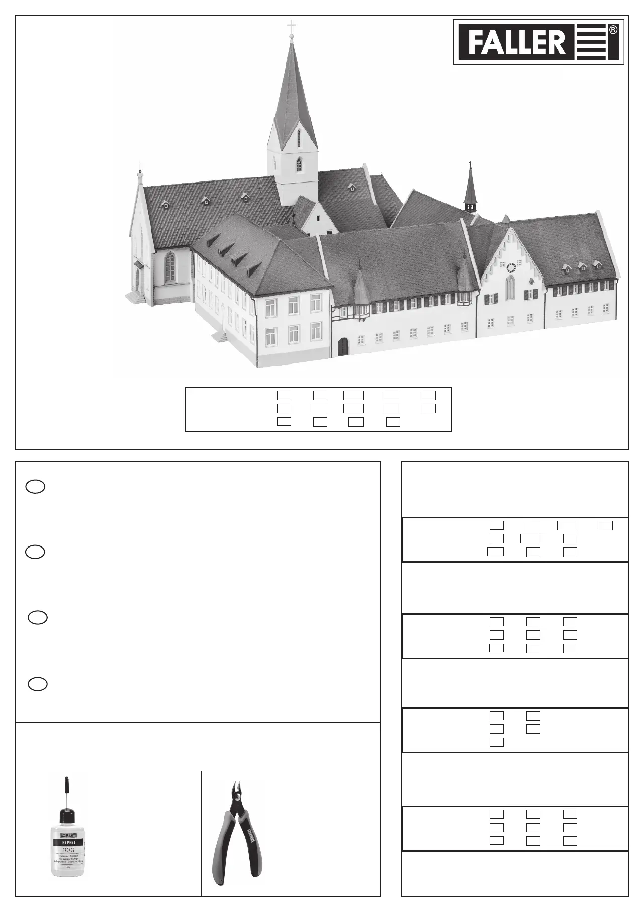 Pour l’assemblage du modèle, nous vous recommandons les articles FALLER suivants (non inclus dans le kit):