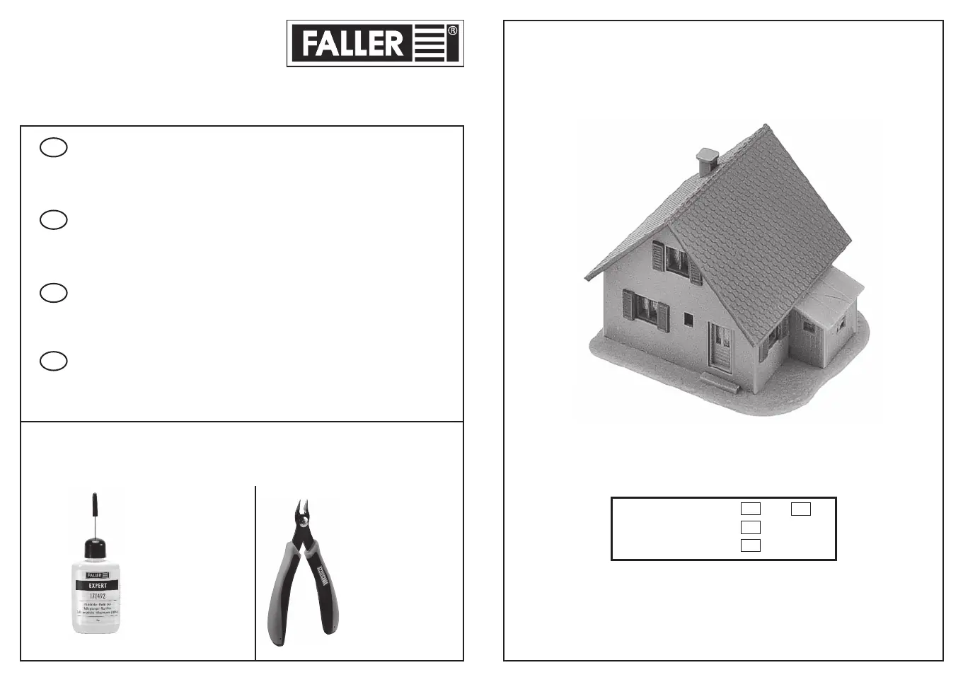 Pour l’assemblage du modèle, nous vous recommandons les articles FALLER suivants (non inclus dans le kit):