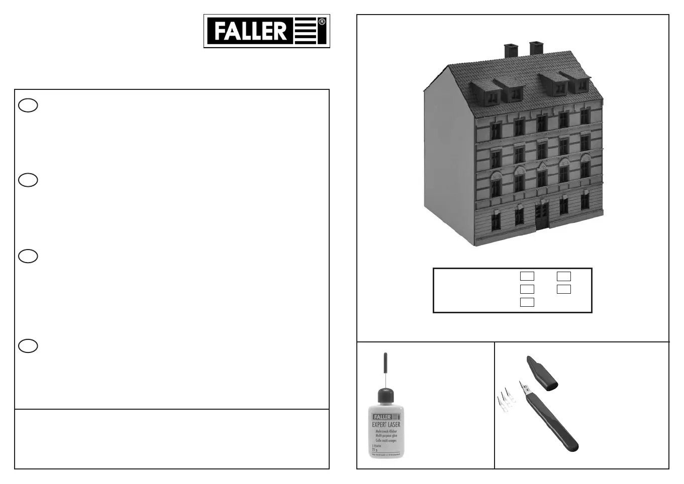 Pour l’assemblage du modèle, nous vous recommandons les articles FALLER suivants: Art. Nr. 170494 + 170687 (non jointe).