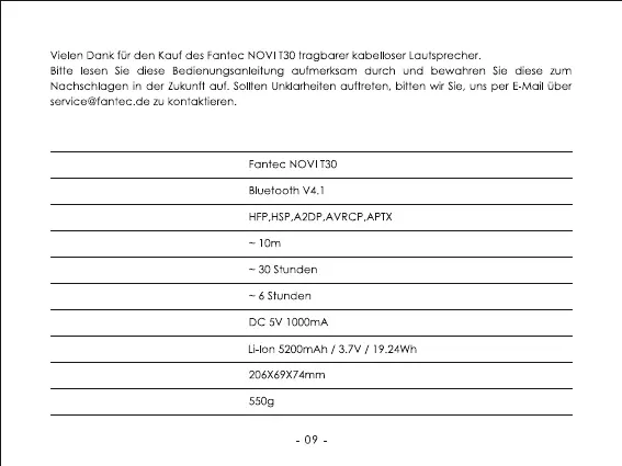 Fantec NOVI T30 Bruksanvisning