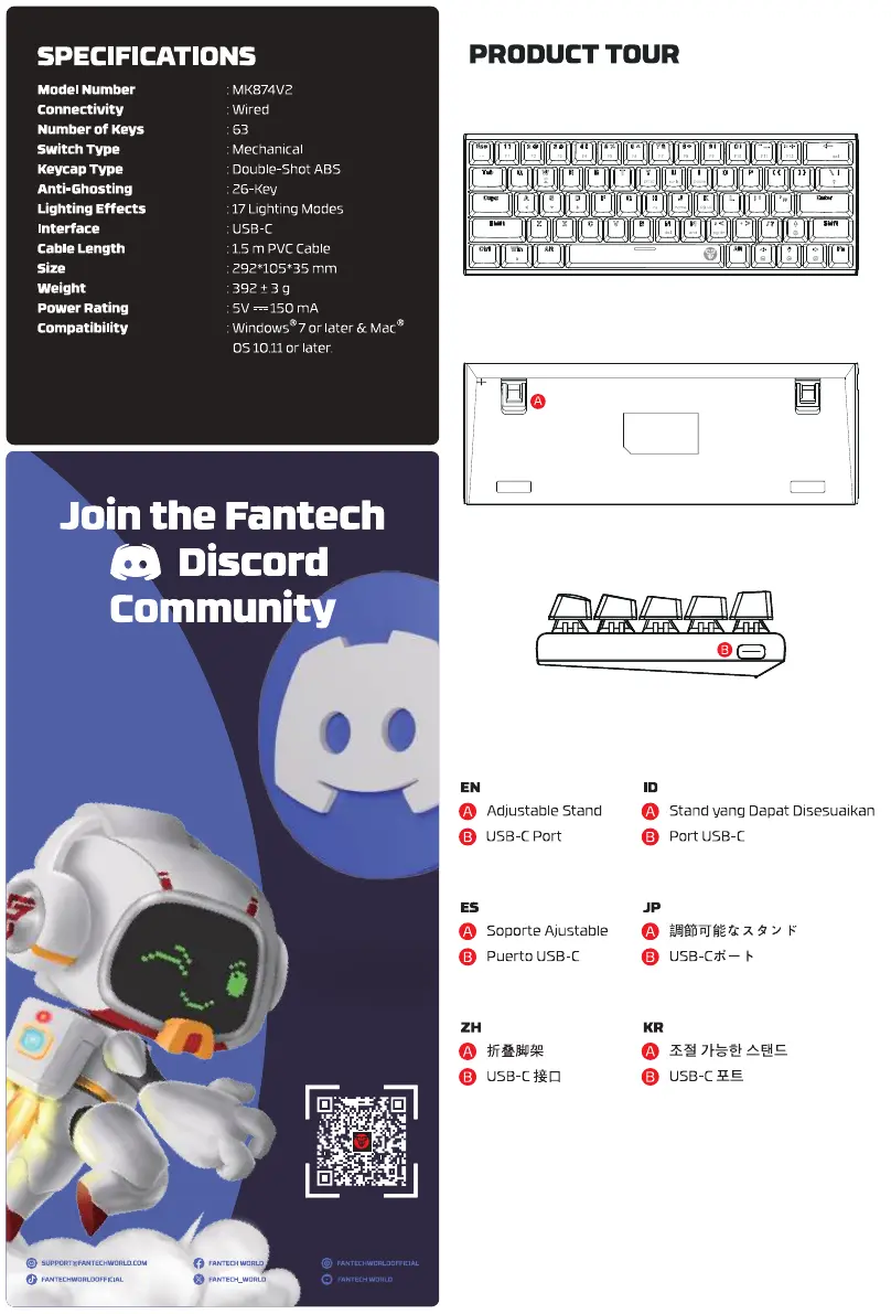Läs gratis den bruksanvisning för Fantech ATOM63 MORI MK874V2 (2 sidor) i kategorin Tangentbord. Guiden har ansetts hjälpsam av 7 personer och har ett genomsnittsbetyg på 5.0 stjärnor baserat på 4 recensioner. Har du en fråga om Fantech ATOM63 MORI MK874V2 eller vill du ställa frågor till andra användare av produkten? Ställ en fråga