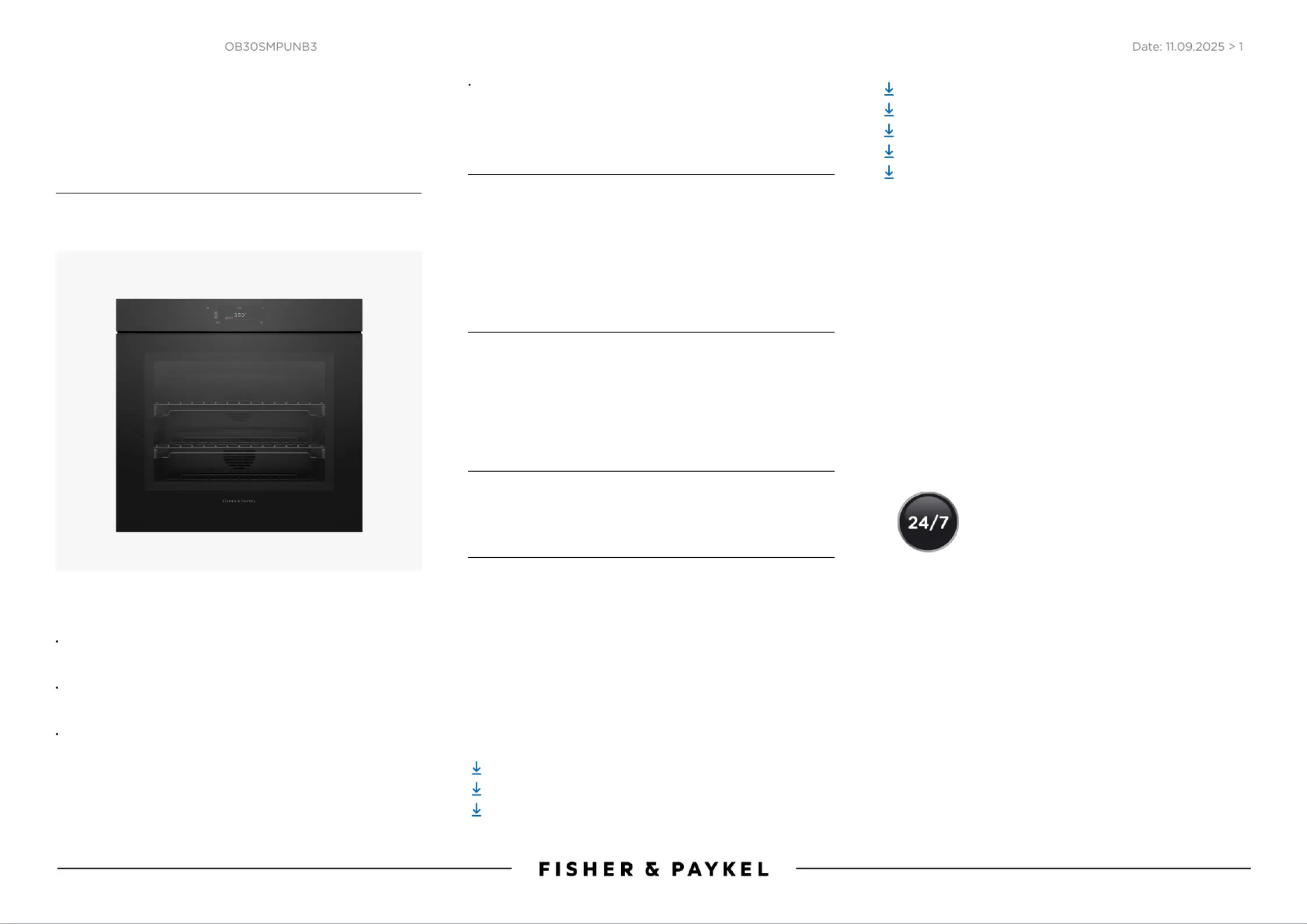 Fisher Paykel OB30SMPUNB3 Bruksanvisning