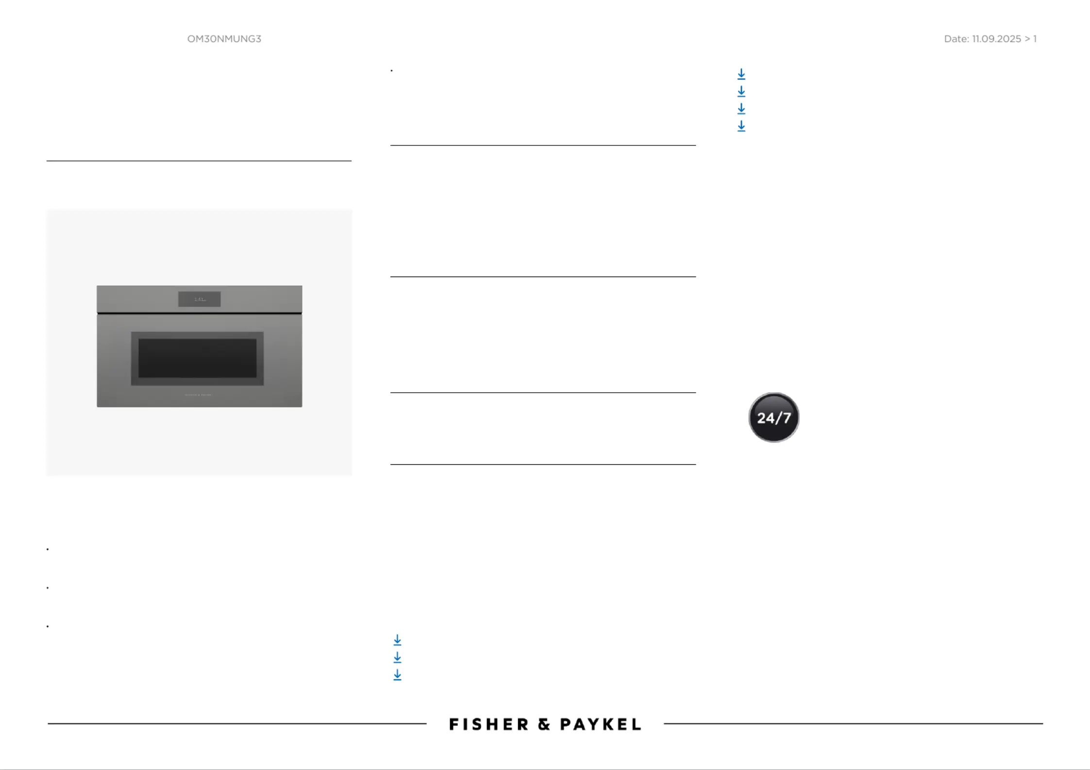 Fisher Paykel OM30NMUNG3 Bruksanvisning