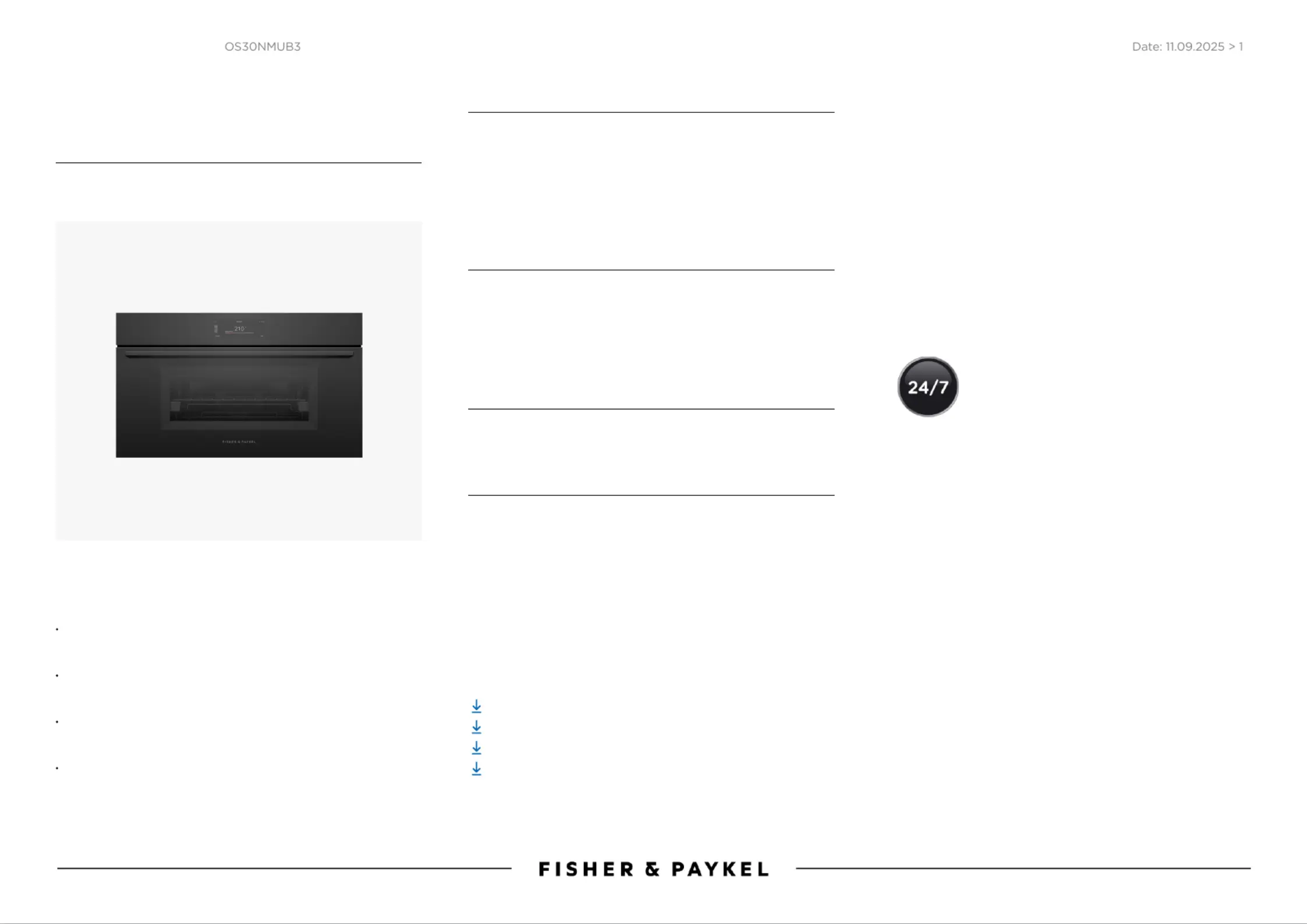 Fisher Paykel OS30NMUB3 Bruksanvisning