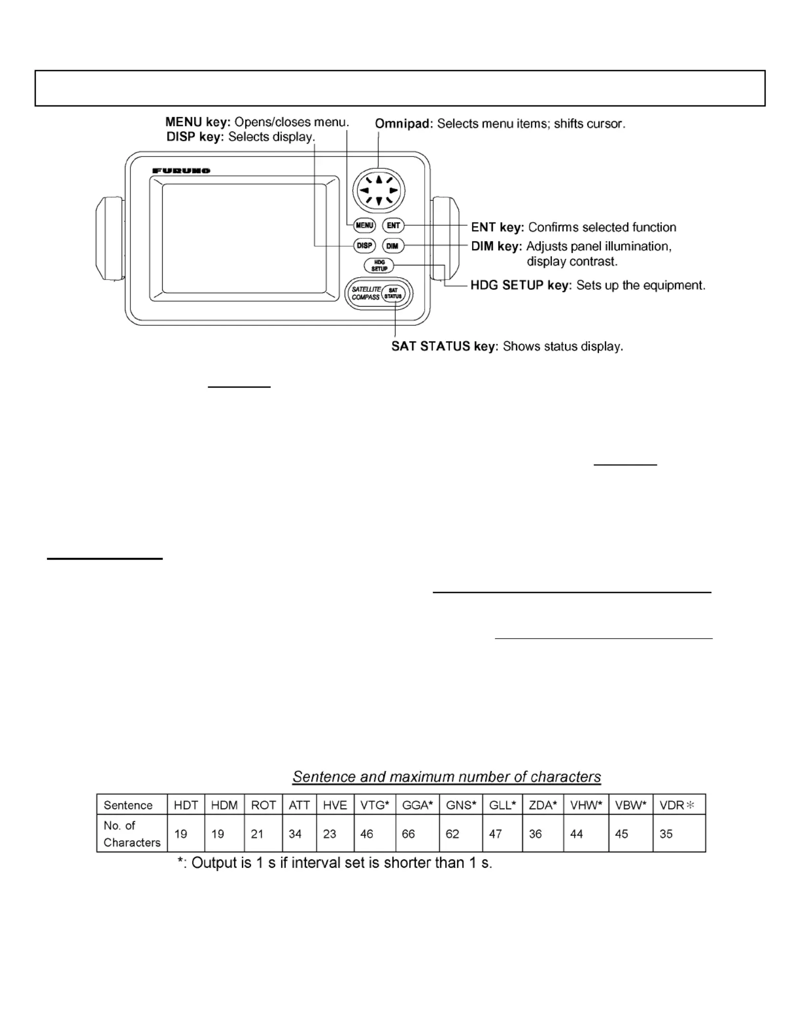 • The maximum number of characters per data sentence is shown in the table below.