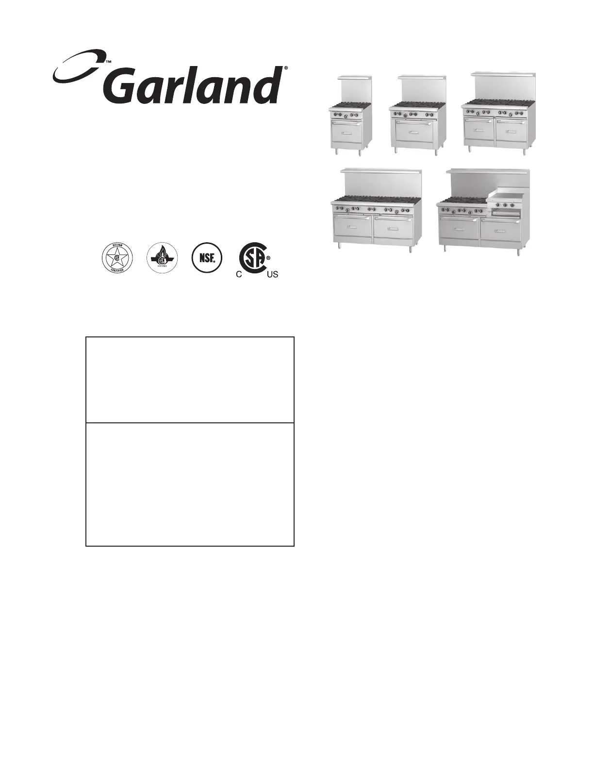 Users are cautioned that maintenance and repairs must be performed by a Garland authorized service agent using