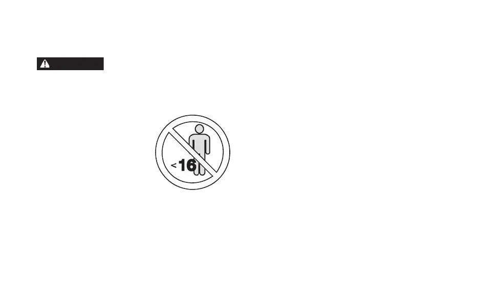 • This vehicle is an ADULT VEHICLE ONLY. NEVER operate this vehicle if you are under age 16 and